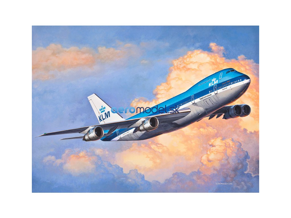 Plastikový model Revell 03999 Boeing 747-200 Jumbo Jet v mierke 1:450 na zlepenie. Stavebnica obsahuje 22 dielov, rozpätie krídel 133 mm, obtiažnosť 3.