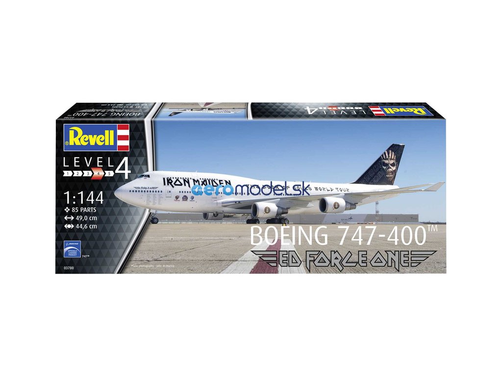 Revell plastikový model letadla Boeing 747-400 Ed Force One v měřítku 1:144 ke slepení. Stavebnice obsahuje 85 dílků, rozpětí křídel 490 mm.