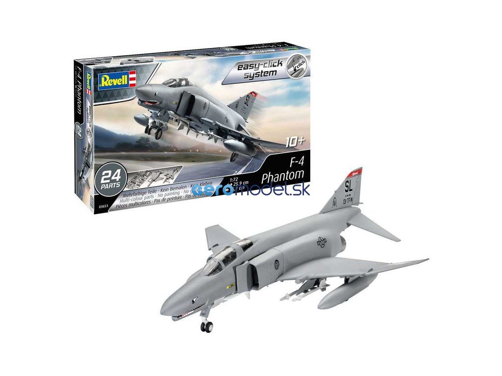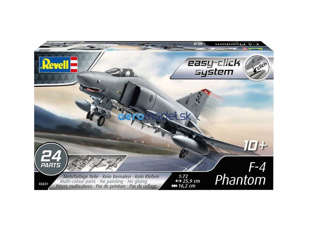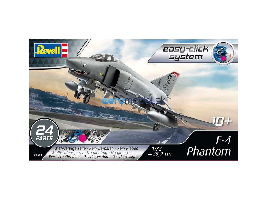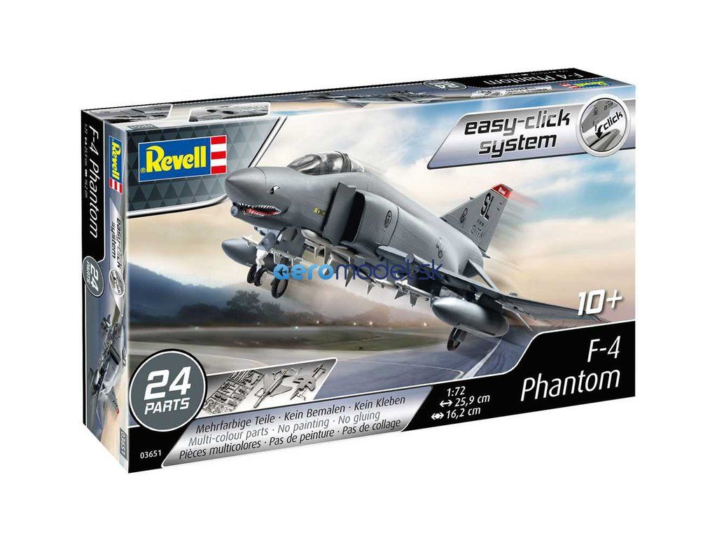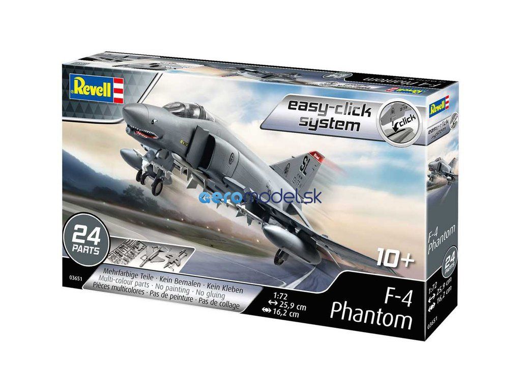 Plastikový model Revell 03651 F-4 Phantom v mierke 1:72 na zostavenie. Stavebnica obsahuje 24 dielov, rozpätie krídla 162 mm, obtiažnosť 2.