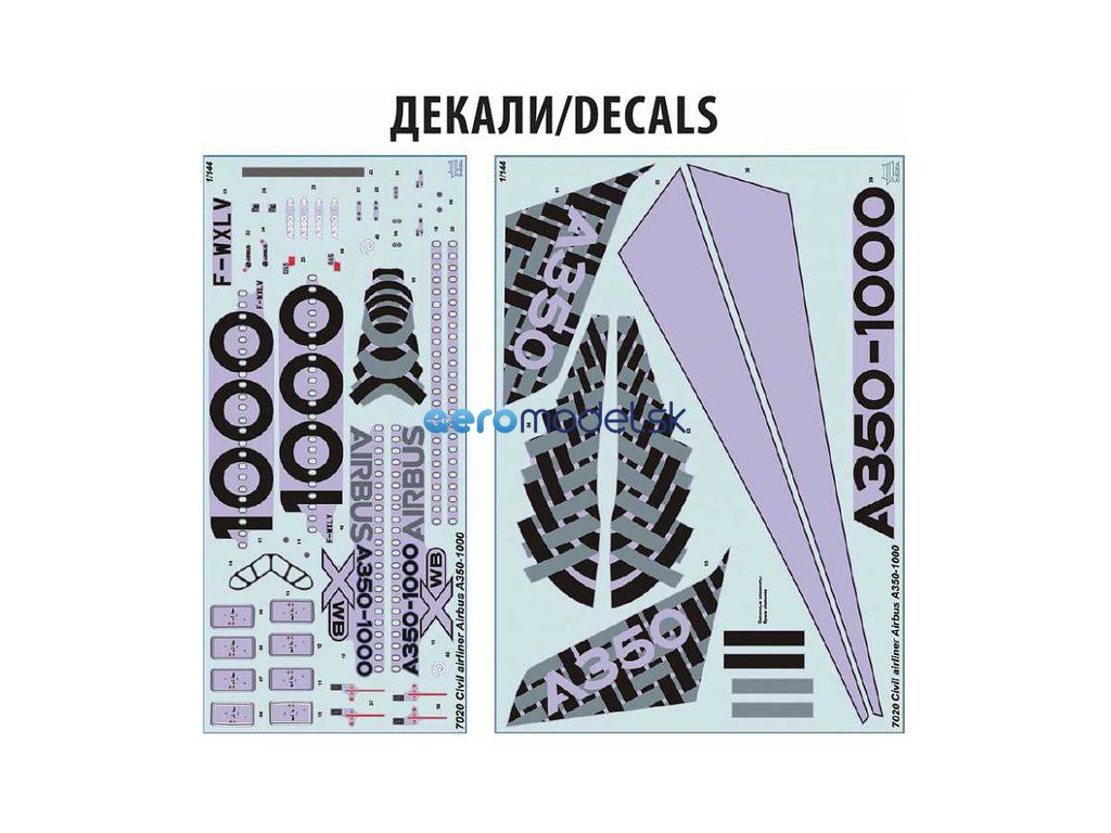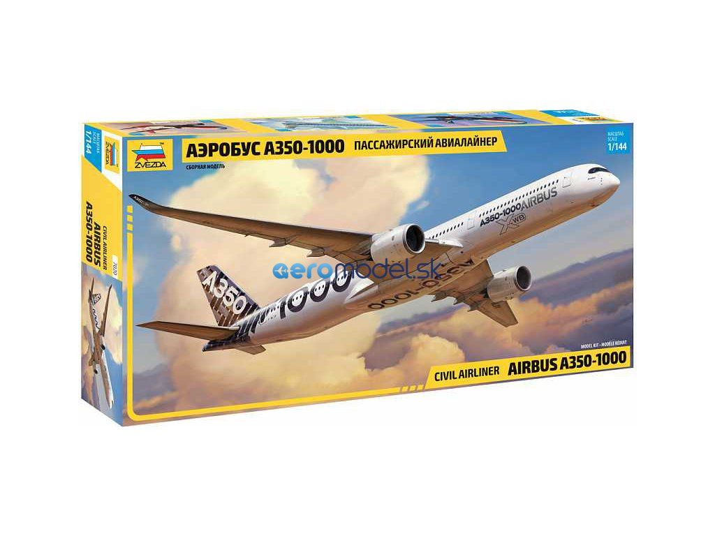 Plastikový model Zvezda 7020 - Airbus A-350-1000 v mierke 1:144 na zlepenie. Sada obsahuje 132 dielov, dĺžka 513 mm.
