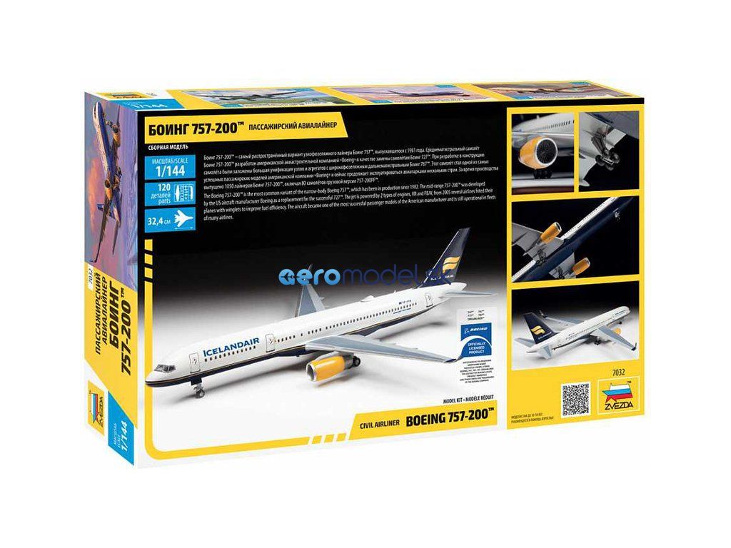 Plastikový model Zvezda 7032 - civilné lietadlo Boeing 757-200 v mierke 1:144 na zlepenie. Stavebnica obsahuje 120 dielov, dĺžka 324 mm.