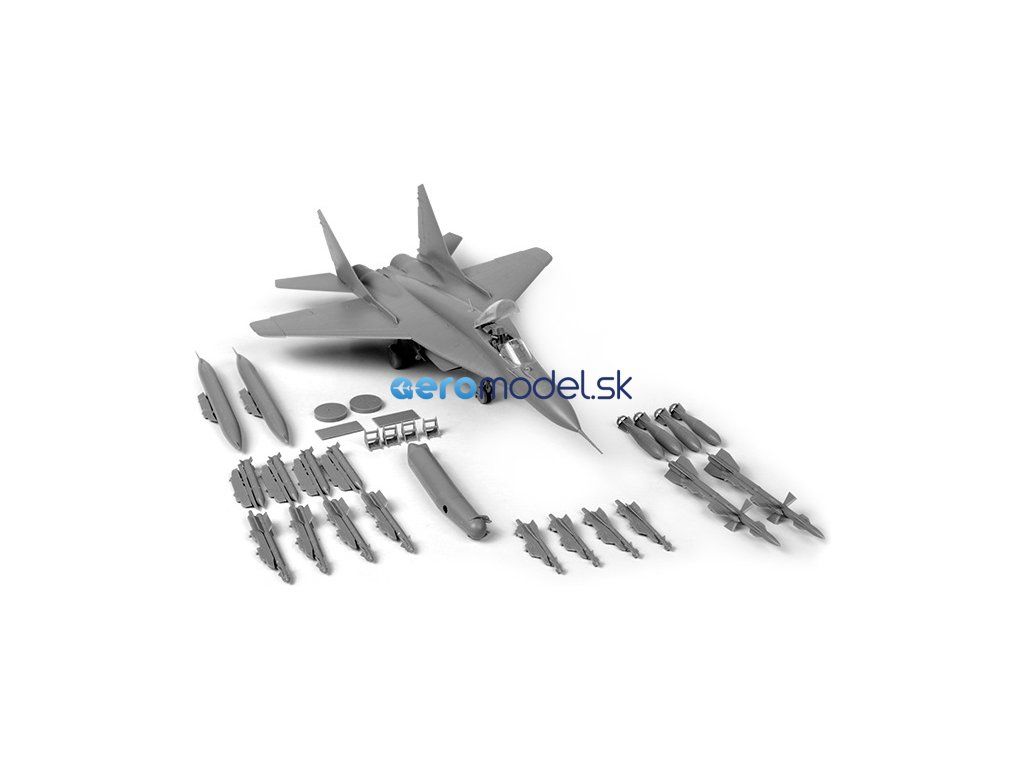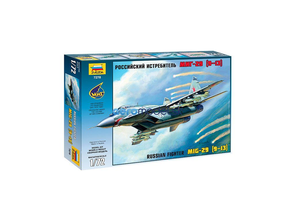 Plastikový model Zvezda 7278 - ruské stíhacie lietadlo MiG-29 v mierke 1:72 na zlepenie. Stavebnica obsahuje 190 dielikov, dĺžka 240 mm, obtiažnosť 3.