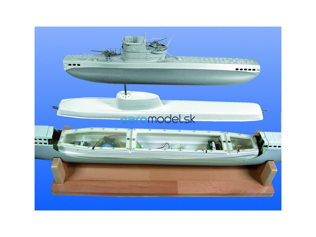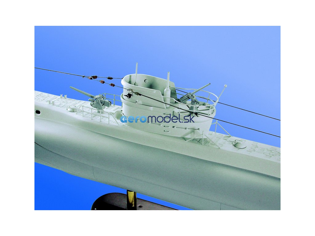 Typ VII byla třída středně velkých ponorek německé Kriegsmarine z období druhé světové války, bylo jich vyrobeno více než 700 kusů. Model je v měřítku 1:60, ve stavebnici je sada plastových výlisků všech částí ponorky, tvarovaná paluba, díly věže atd. Součástí balení jsou kovové díly, 2 lodní šrouby s hřídelemi a vodícími trubičkami, výlisky zbraní, kormidla a spojovací materiál.
