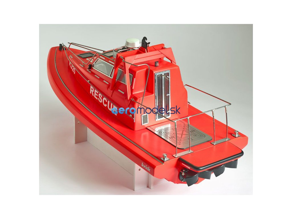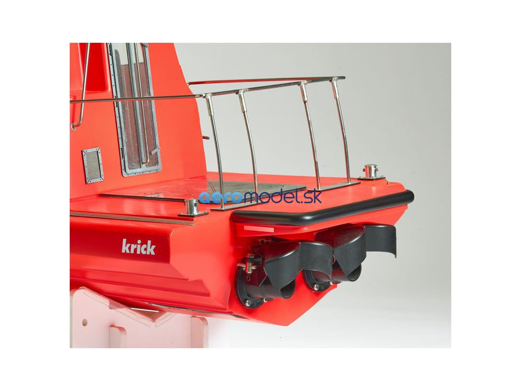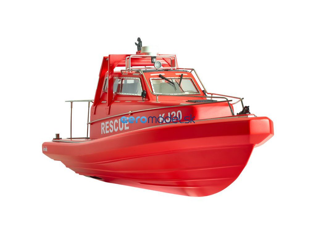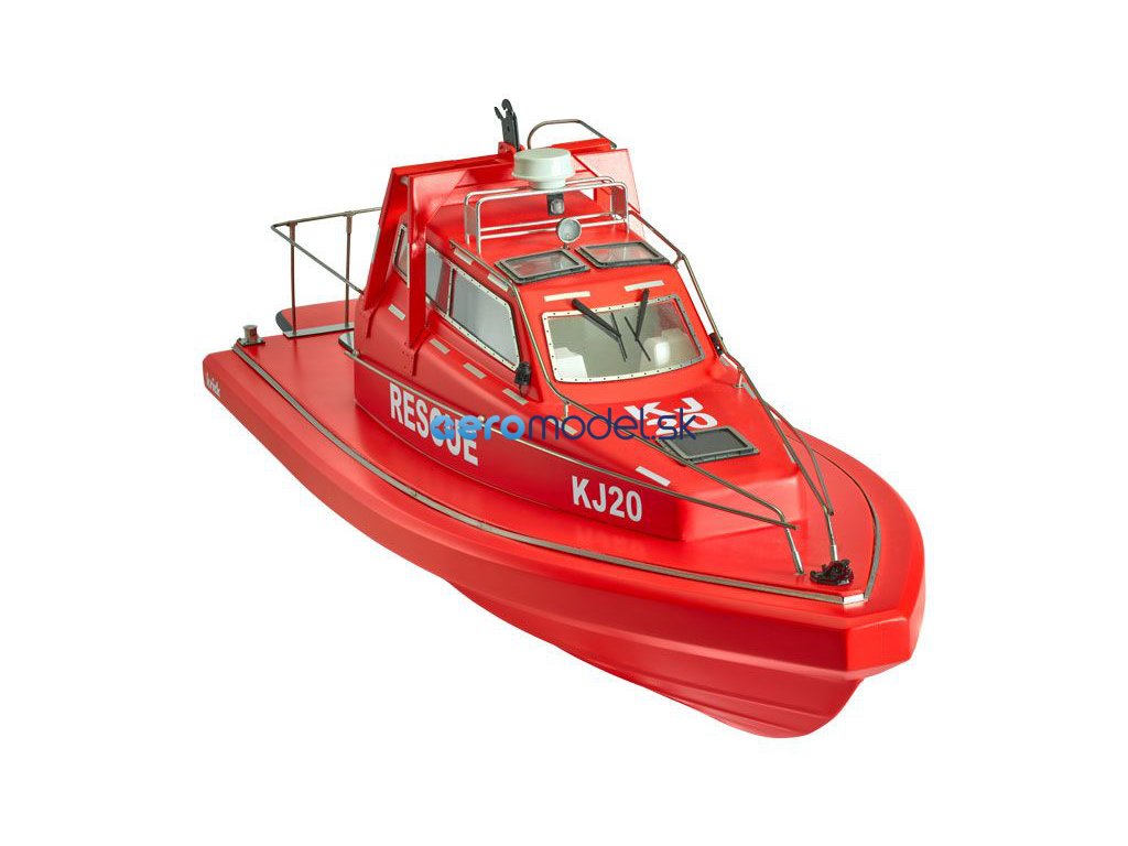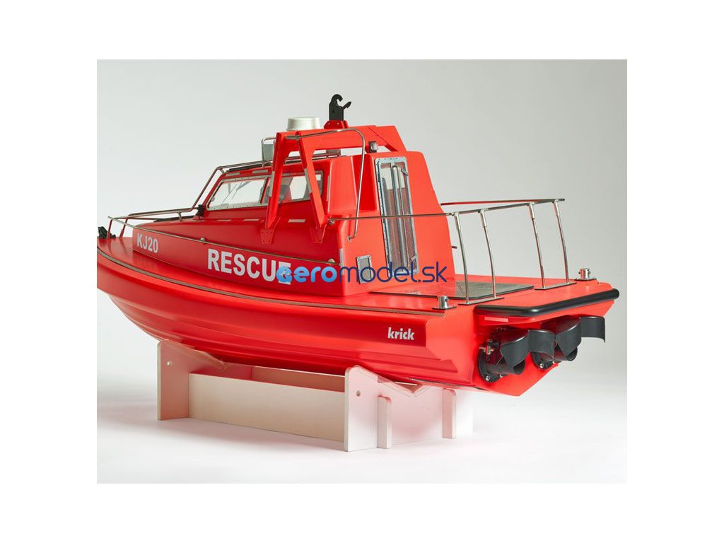 Stavebnice Krick Záchranný člun KJ20 kit je model rychlého proudového člunu, který se používá pro záchranné a policejní složky. Vysoká rychlost, skvělá manévrovatelnost a schopnost plavit se ve velmi mělkých vodách jsou výjimečné. Model má laminátové díly trupu, paluby a nástaveb. Měřítko 1:15.