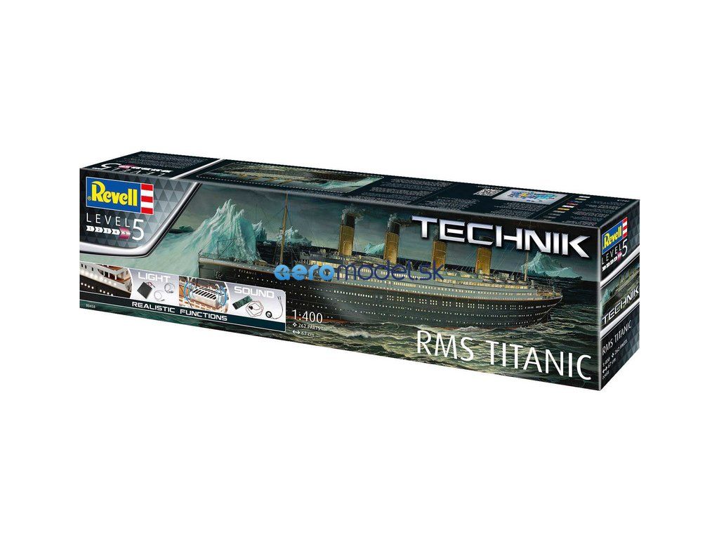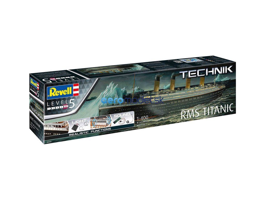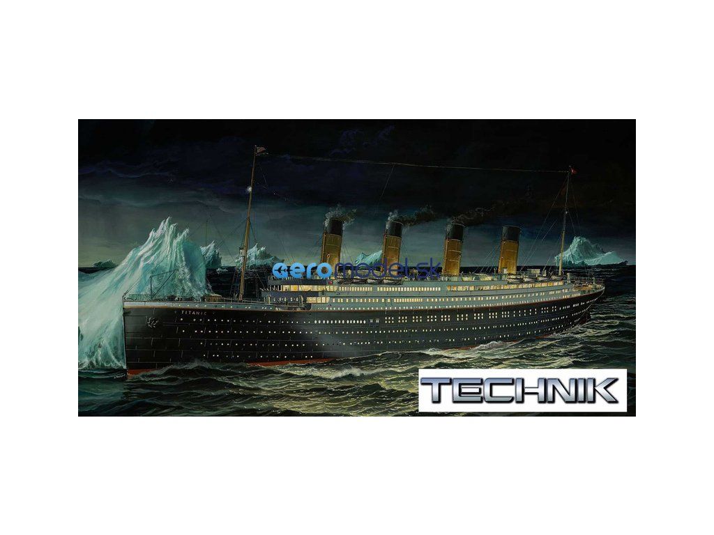 Plastikový model Revell 00458 - loď R.M.S. TITANIC v mierke 1:400 na zostavenie. Stavebnica obsahuje 262 dielov, dĺžka 670 mm, obtiažnosť 5.