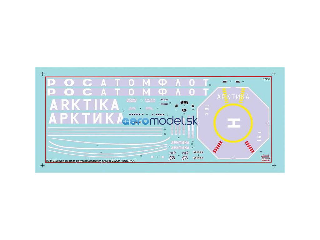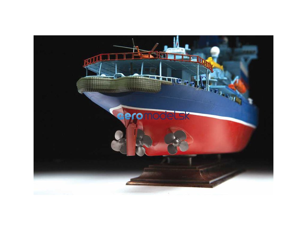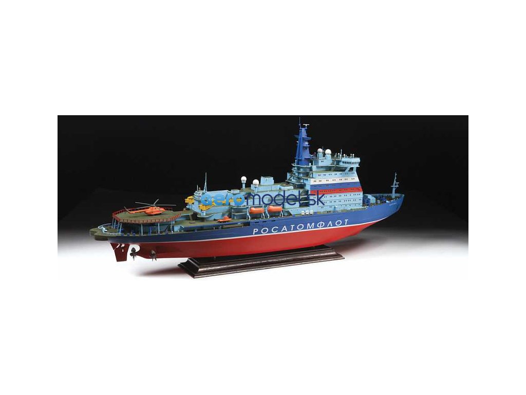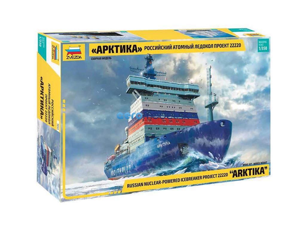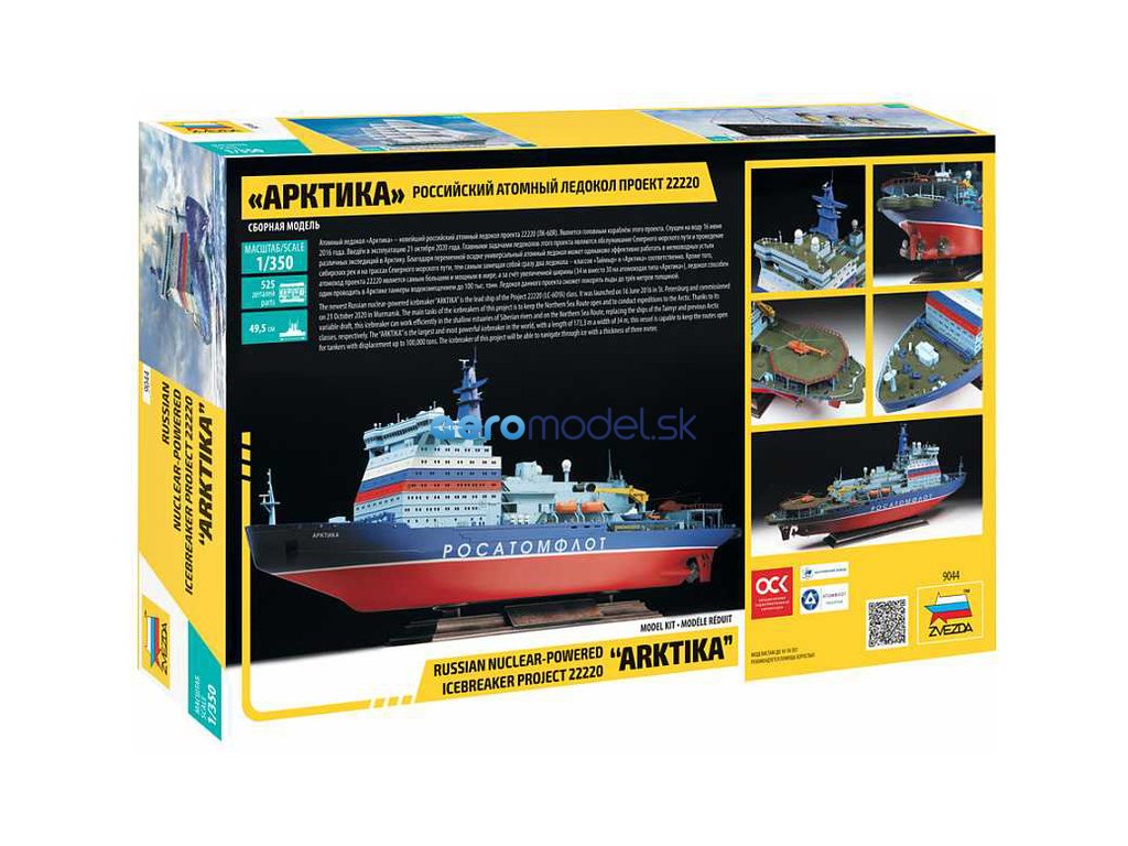 Plastikový model Zvezda 9044 - jadrový ľadoborec Arctic (projekt 22220) v mierke 1:350 na zlepenie. Stavebnica obsahuje 525 dielov, dĺžka 495 mm.