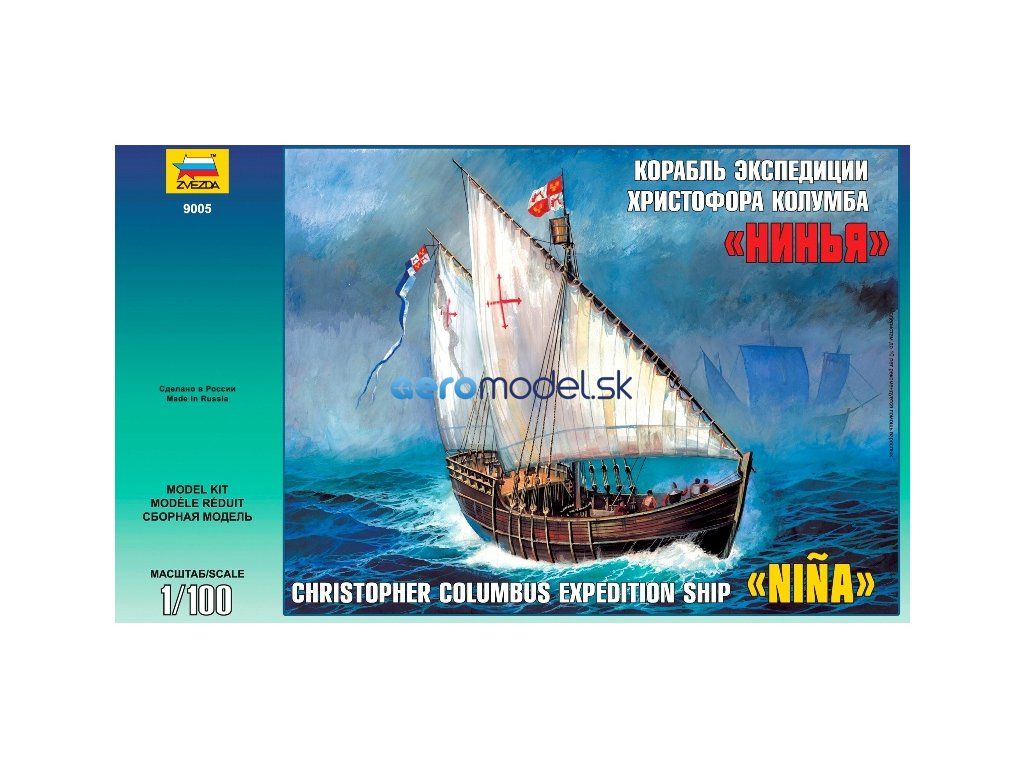 Plastikový model Zvezda 9005 - loď Krištofa Kolumba "Nina" v mierke 1:100 na zlepenie. Stavebnica obsahuje 186 dielikov, dĺžka 210 mm.