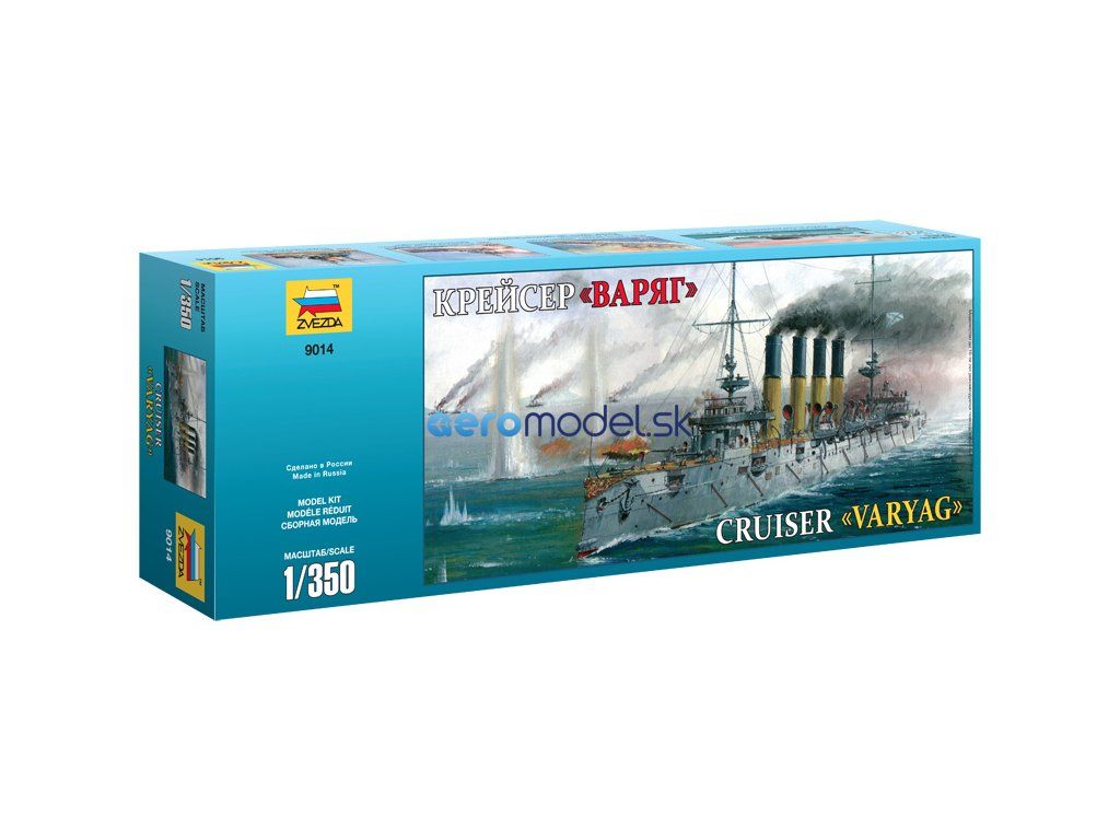 Plastikový model Zvezda 9014 - ruský krížnik "Varjag" v mierke 1:350 na zlepenie. Stavebnica obsahuje 306 dielikov, dĺžka 370 mm, obtiažnosť 3.