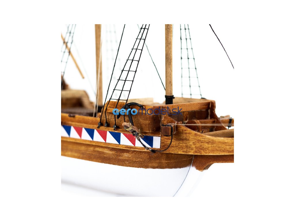 Balení obsahuje hotový polotovar trupu, překližkové díly, dřevěné lišty, blistr s drobnými díly, sadu výkresů a návod český, anglický a italský.