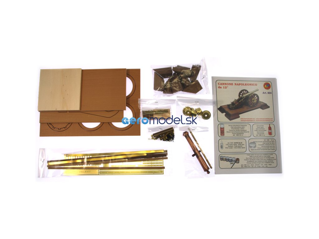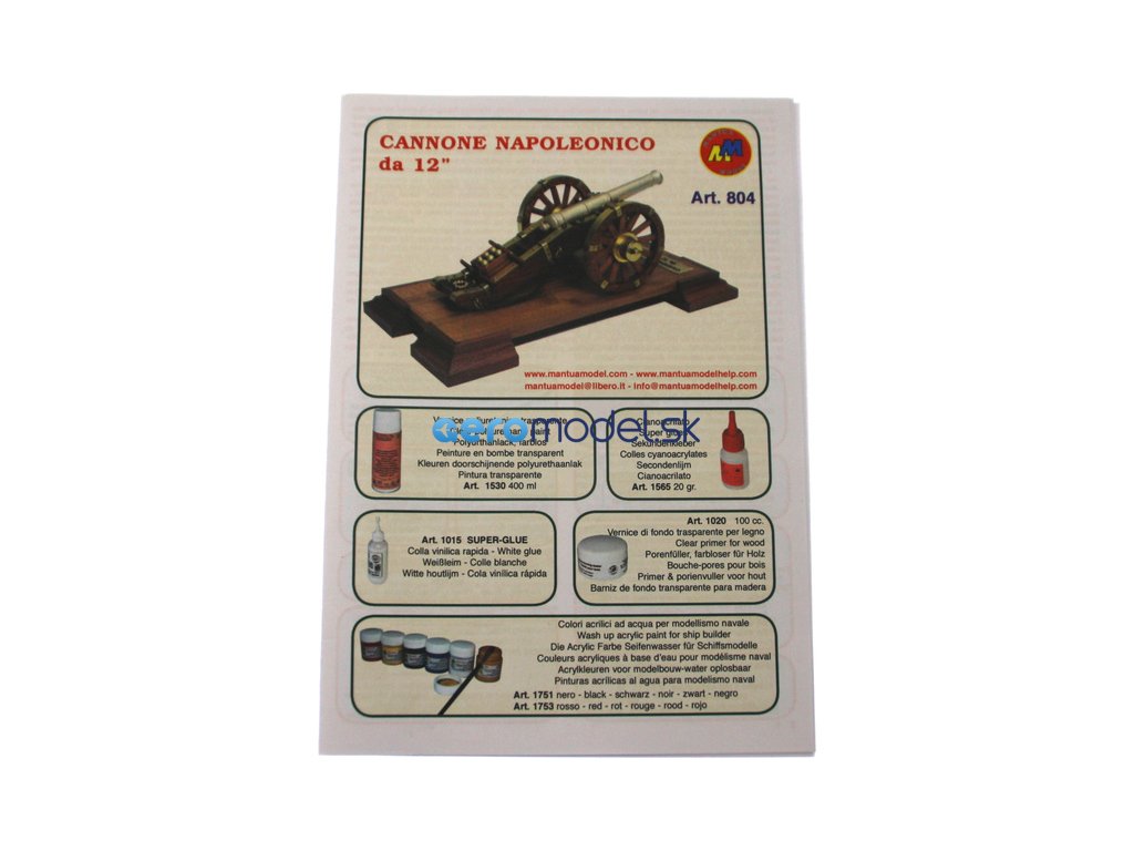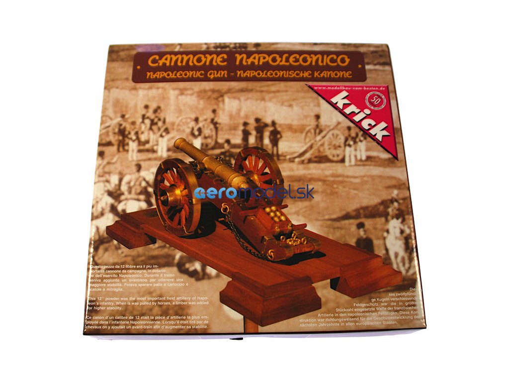Stavebnice modelu Napoleonského kanónu , neboli 12 liberní polní dělo, v měřítku 1:17. Jedno z nejdůležitějších zbraní Napoleonovy pěchoty, které se později stalo vzorem pro další polní děla. Z děla bylo možné střílet jak litými dělovými koulemi, tak dělostřeleckými granáty, šrapnely nebo kartáčovými náboji. Dostřel děla činil asi 1,5 km, při střelbě kartáčovými náboji do 300 metrů, navíc poměrně přesně. Dělo bylo poměrně lehké, takže se dalo na bojišti rychle přemísťovat pomocí koňského potahu.