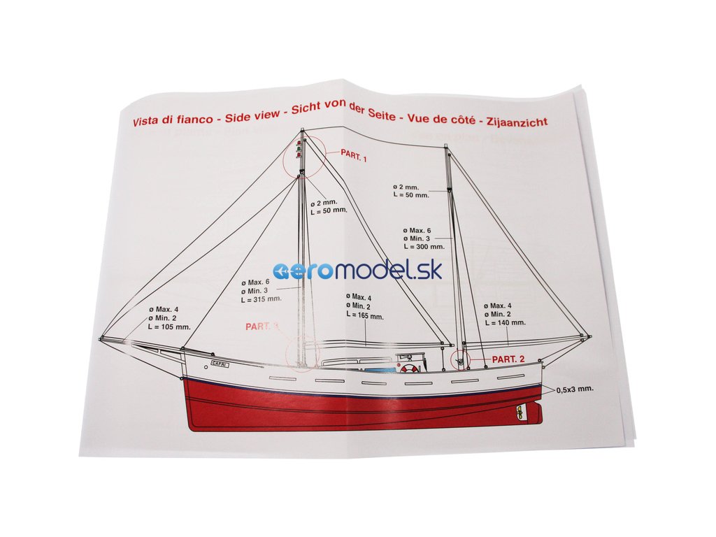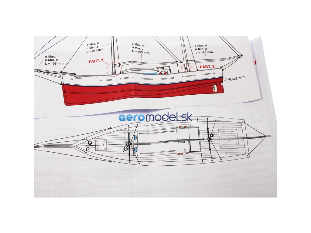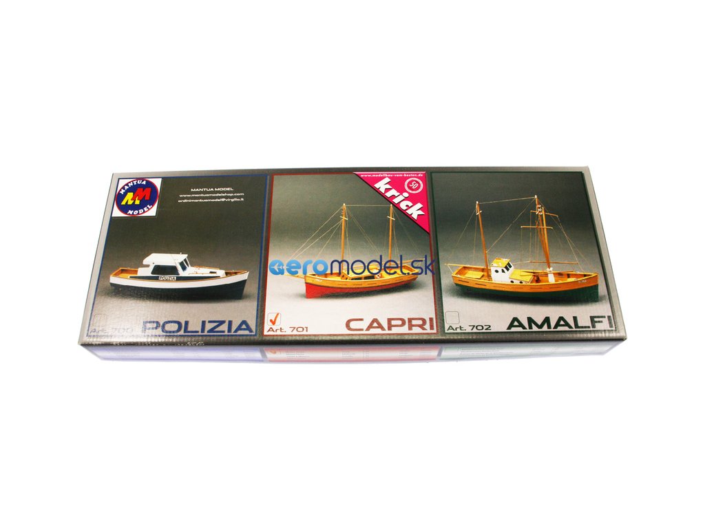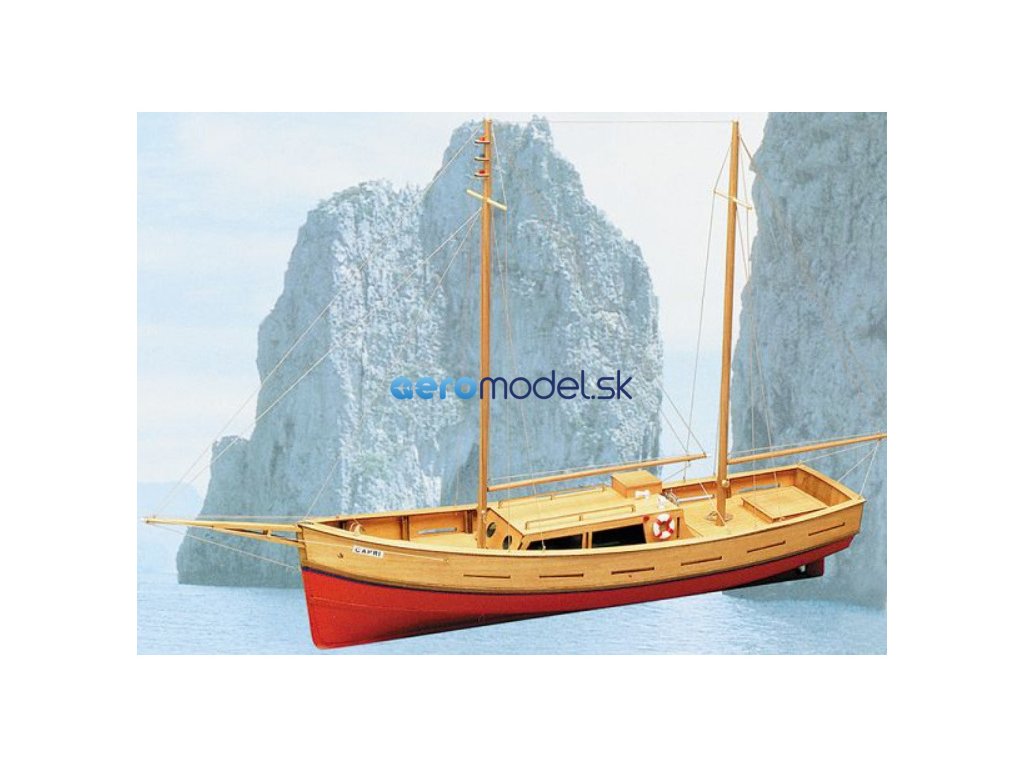 Stavebnice neplovoucí makety Mantua Model Plachetnice Capri 1:35 kit o délce 550mm. Tato loď je ještě dnes k vidění v mnoha italských přístavech. Většinou se používá k víkendovým výletům a pohodové plavbě podél pobřeží. Je ideálním modelem pro začínající modeláře, kteří se chtějí zabývat stavbou modelů lodí z dřevěných stavebnic. Stavebnice je plně vybavena přesně lícujícími dřevěnými díly vyřezanými laserem, drobnými díly pro dokončení modelu, stavebních plánů a návodem s výkresy.