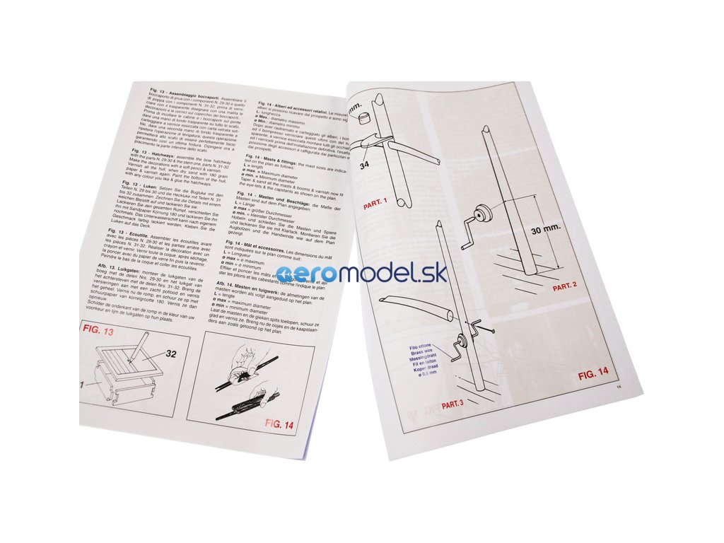Set obsahuje kompletní sadu výkresové dokumentace modelu v měřítku 1:1 s obrázky jednotlivých detailů. Na výkrese jsou v měřítku nakresleny montážní sestavy, jejich kompletace a to včetně stěžňů a ráhen a způsob vázání lanoví. Vícejazyčný postup stavby rámcově upravuje logické sestavení jednotlivých komponentů.