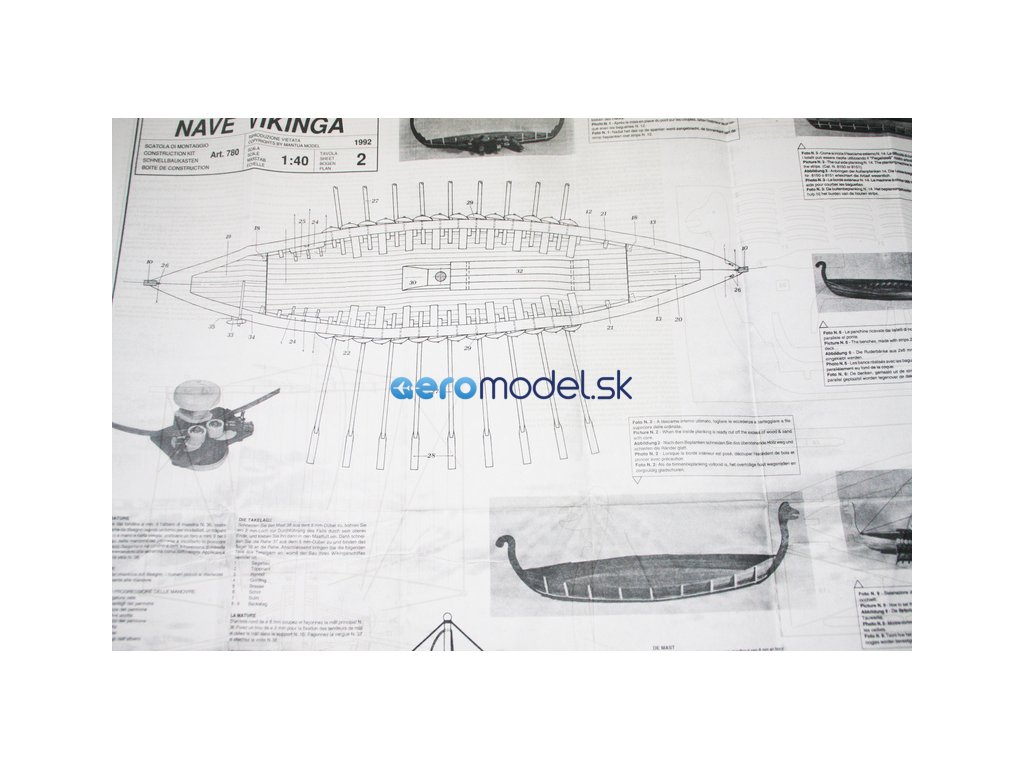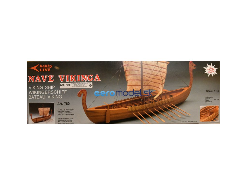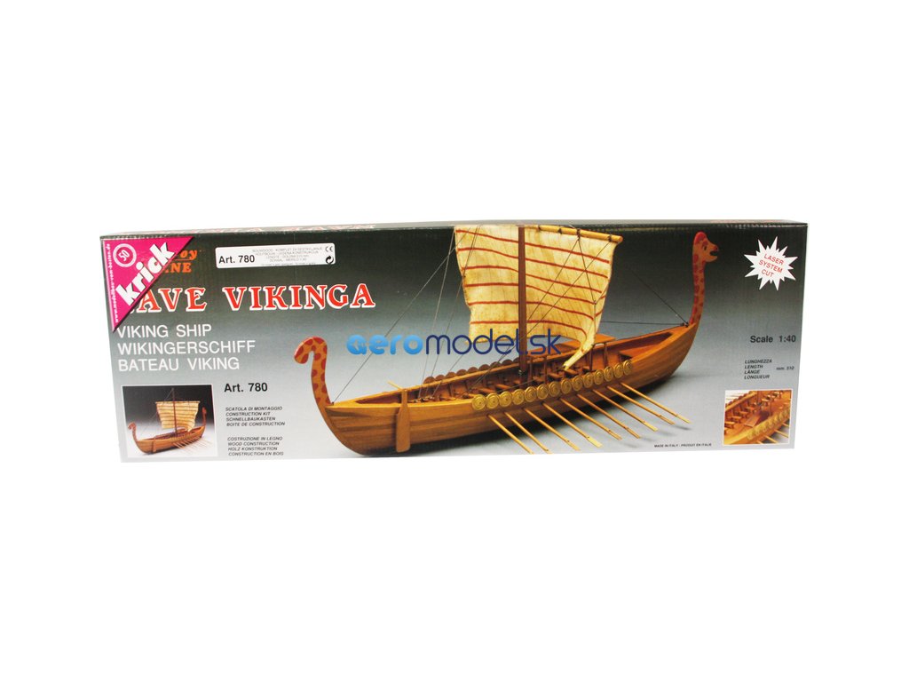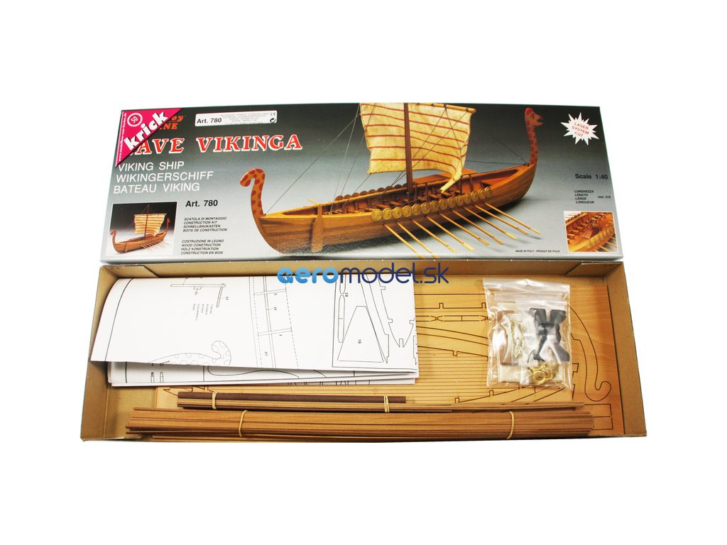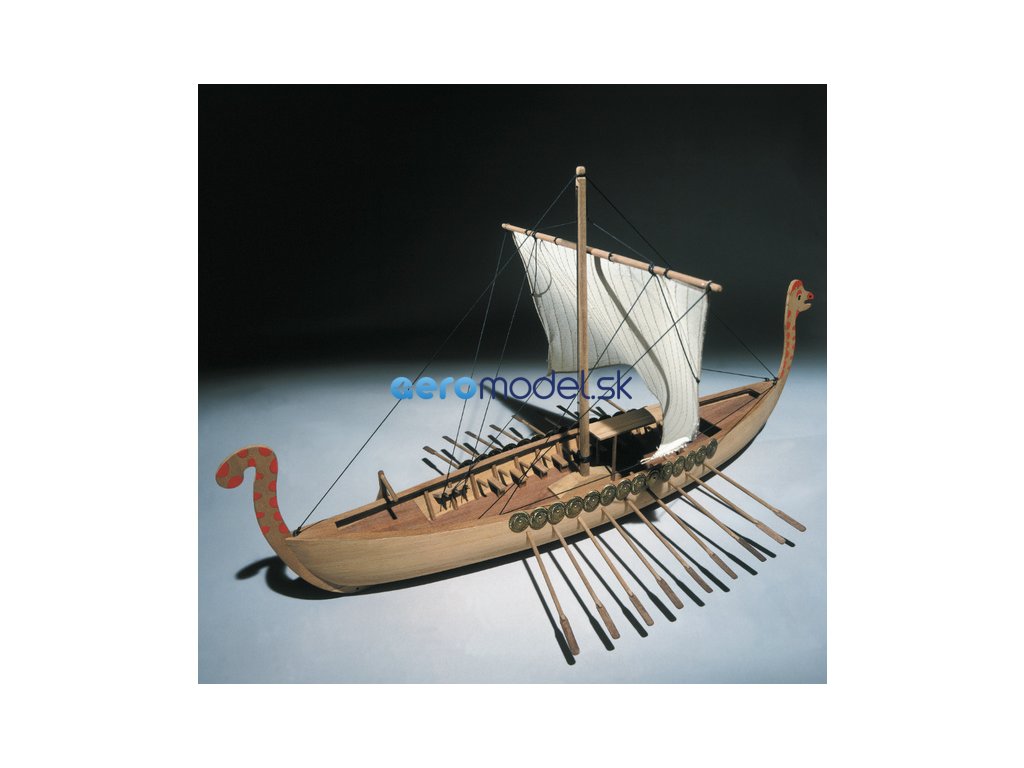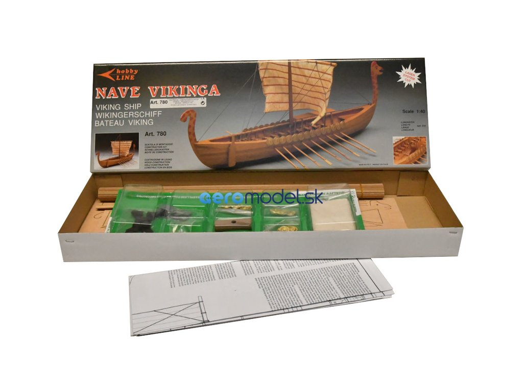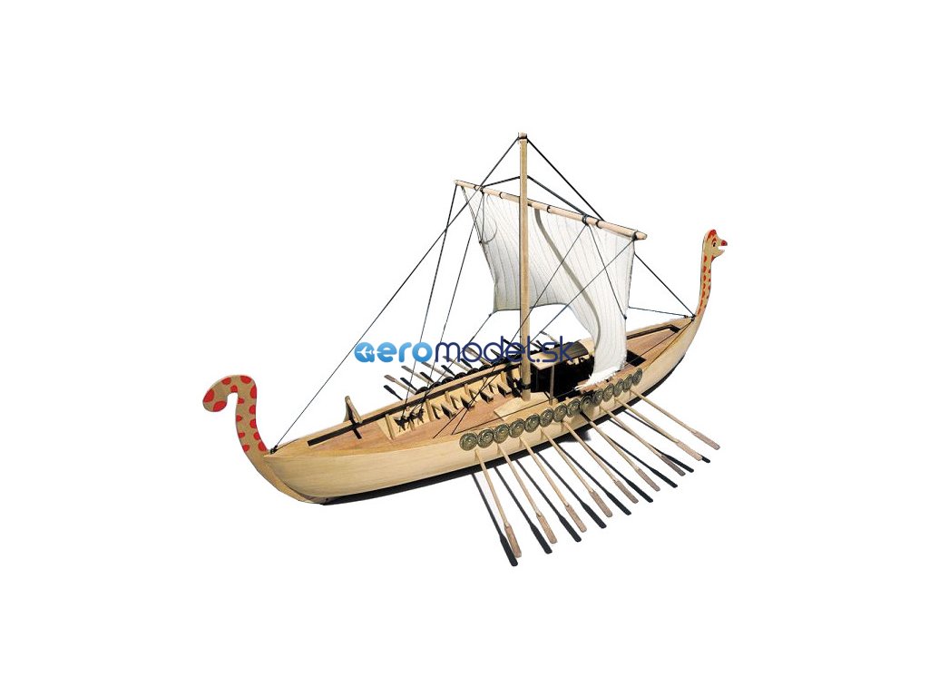 Stavebnice neplovoucího modelu Vikingské lodi v měřítku 1:40. Pěkný začátečnický model s délkou 51 cm. Kit obsahuje dřevěné díly, stěžeň, ráhno, dekorace z ražené mosazi, plachtovina a ozdobné díly. Stavební plán. Pro zrychlení stavby si můžete dokoupit volitelnou Sadu hotových ušitých plachet.