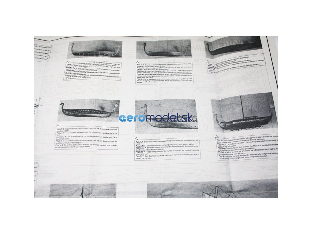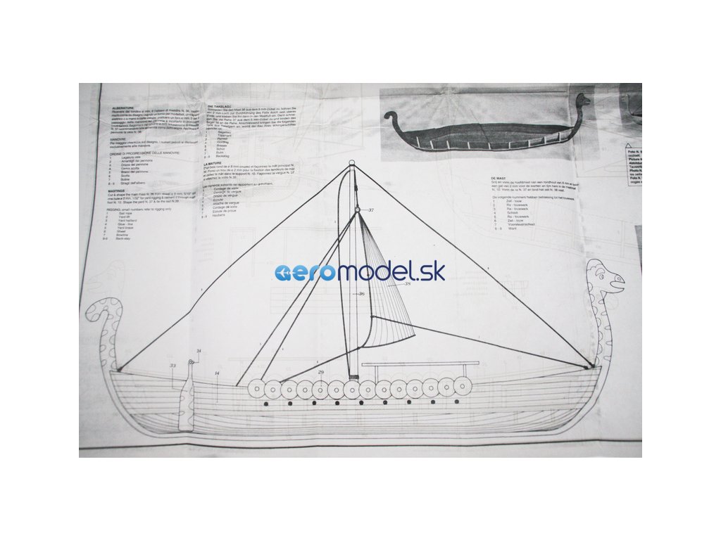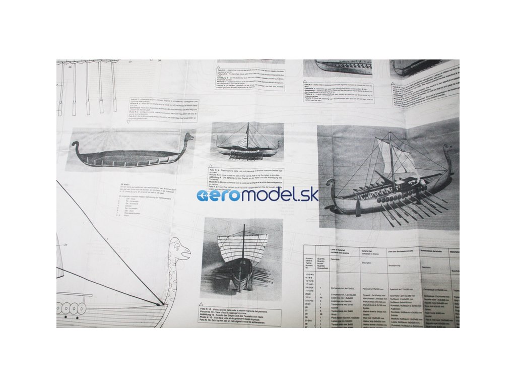 Set obsahuje kompletní sadu výkresové dokumentace modelu v měřítku 1:1 s obrázky jednotlivých detailů. Na výkrese jsou v měřítku nakresleny montážní sestavy, jejich kompletace a to včetně stěžňů a ráhen a způsob vázání lanoví. Vícejazyčný postup stavby rámcově upravuje logické sestavení jednotlivých komponentů.