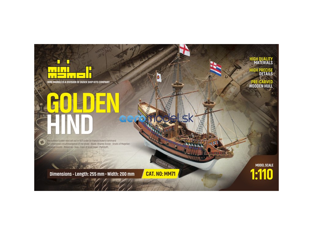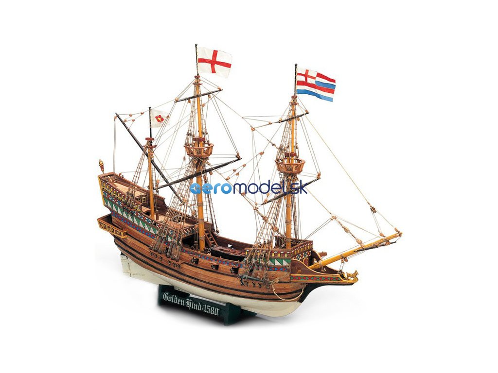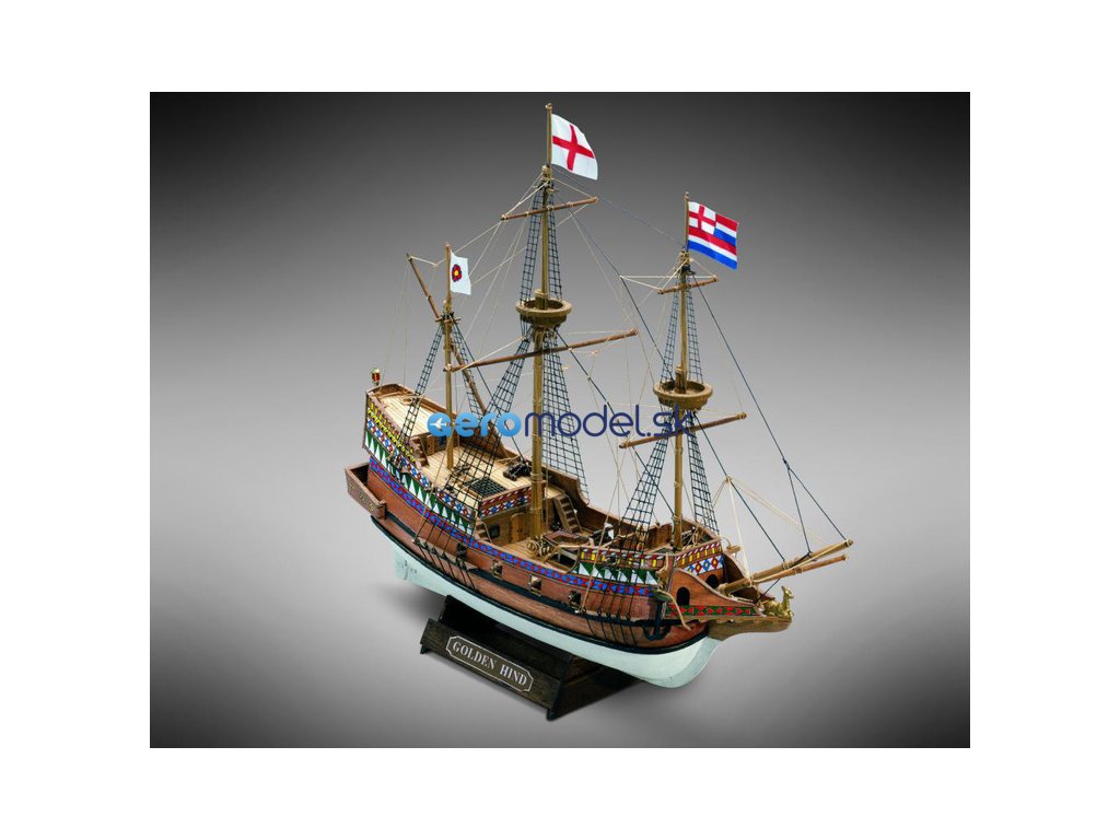 Model lodi Golden Hind, z řady Mini Mamoli, v měřítku 1:110. Golden Hind (Zlatá laň) byla vlajkovou lodí Francise Drakea, na níž obeplul v letech 1577–1580 zeměkouli. Původně se jmenovala Pelican, ale Drake ji během své cesty přejmenoval. Šlo o galeonu spuštěnou na vodu někdy kolem roku 1570. Přesné rozměry lodi nejsou známy, předpokládá se délka 26 m a výtlak 120 tun. Výzbroj mělo tvořit 18 děl. Vhodné pro začínající modeláře. Model lze sestavit během několika hodin. Vhodné od 14 let.