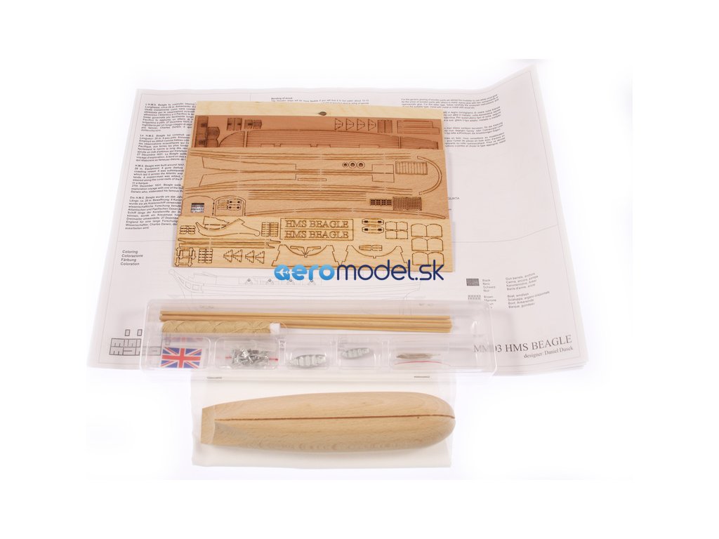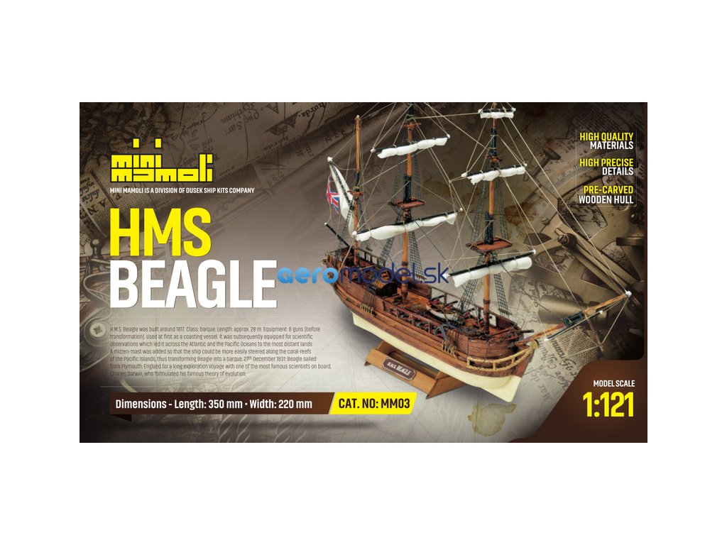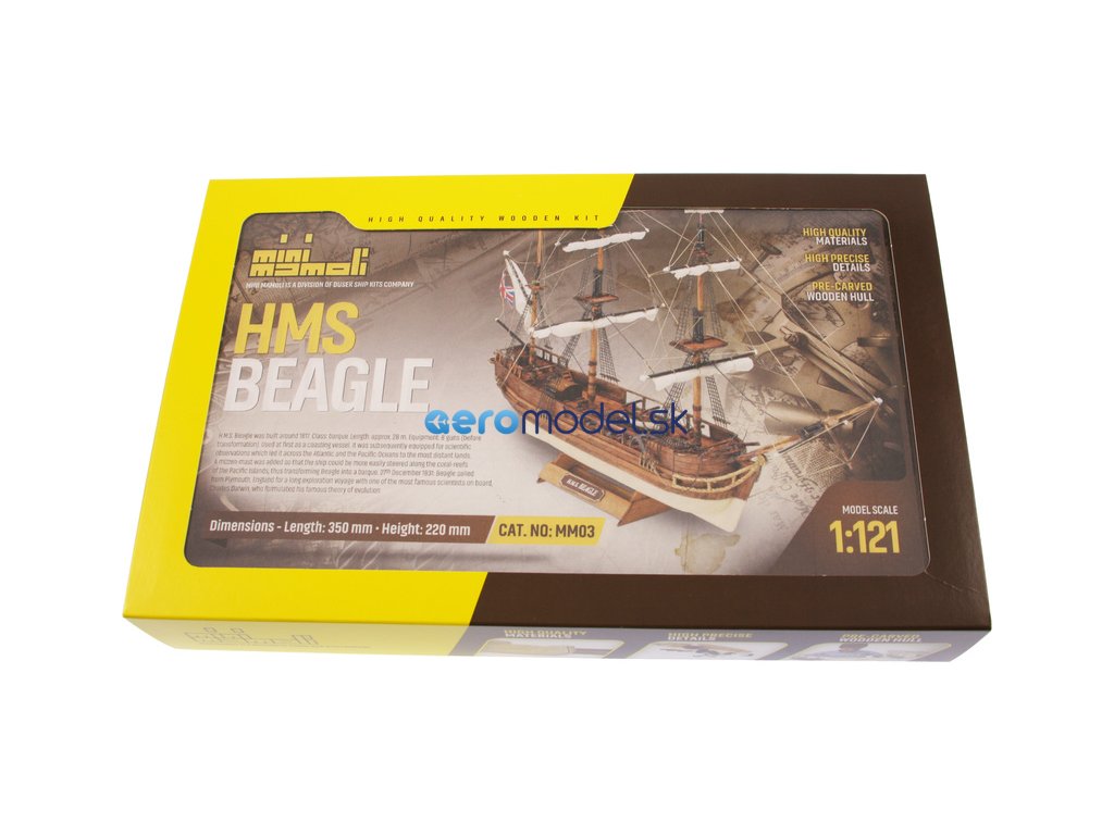 Model lodi H.M.S. Beagle, z řady Mini Mamoli, v měřítku 1:121. Loď britského královského námořnictva působila nejdříve jako pobřežní stráž, později byla po odstranění děl použita k vědeckým účelům v Indickém a Tichém oceánu. Vhodné pro začínající modeláře. Model lze sestavit během několika hodin. Vhodné od 14 let.
