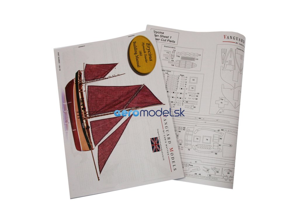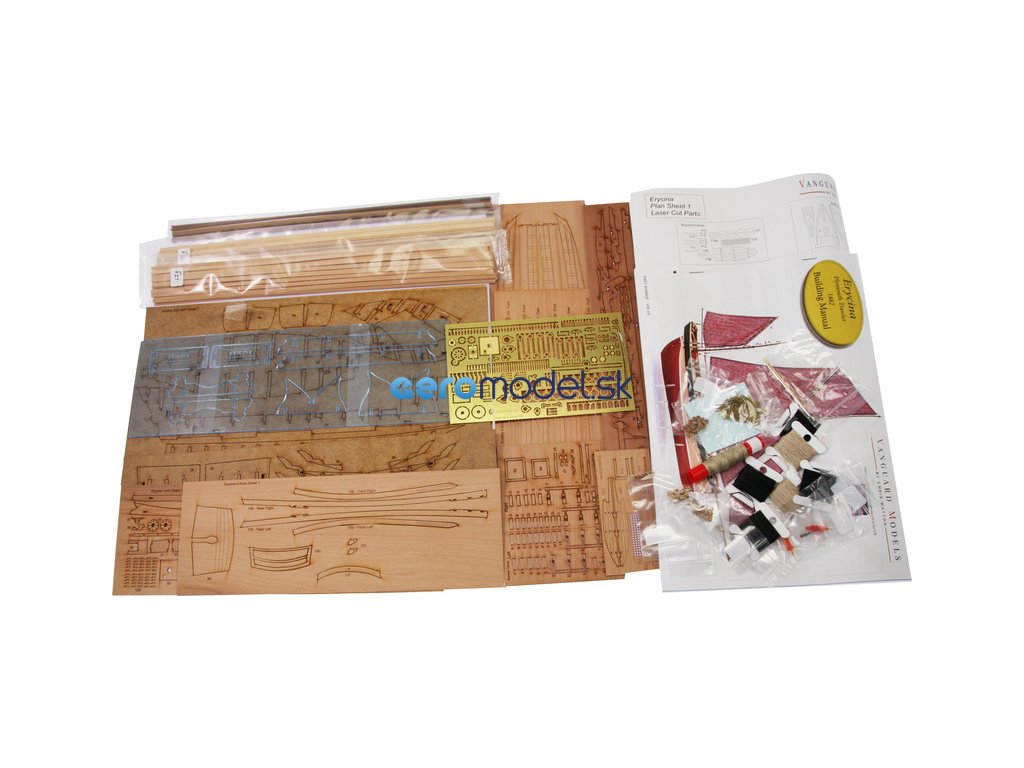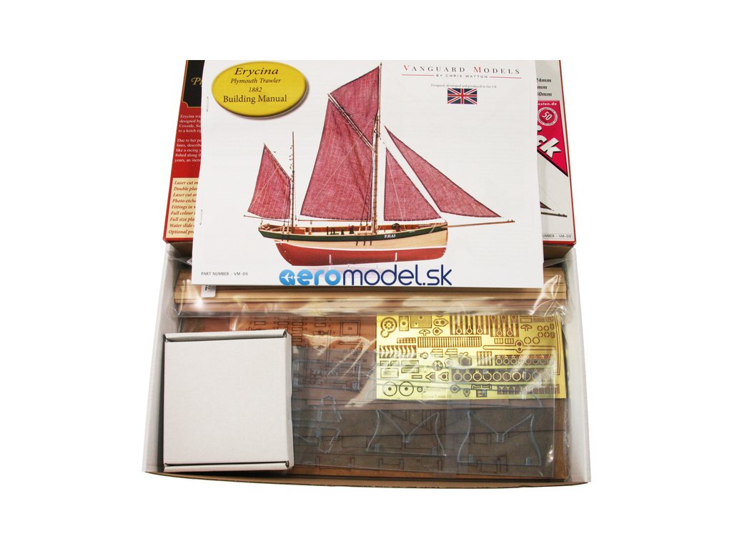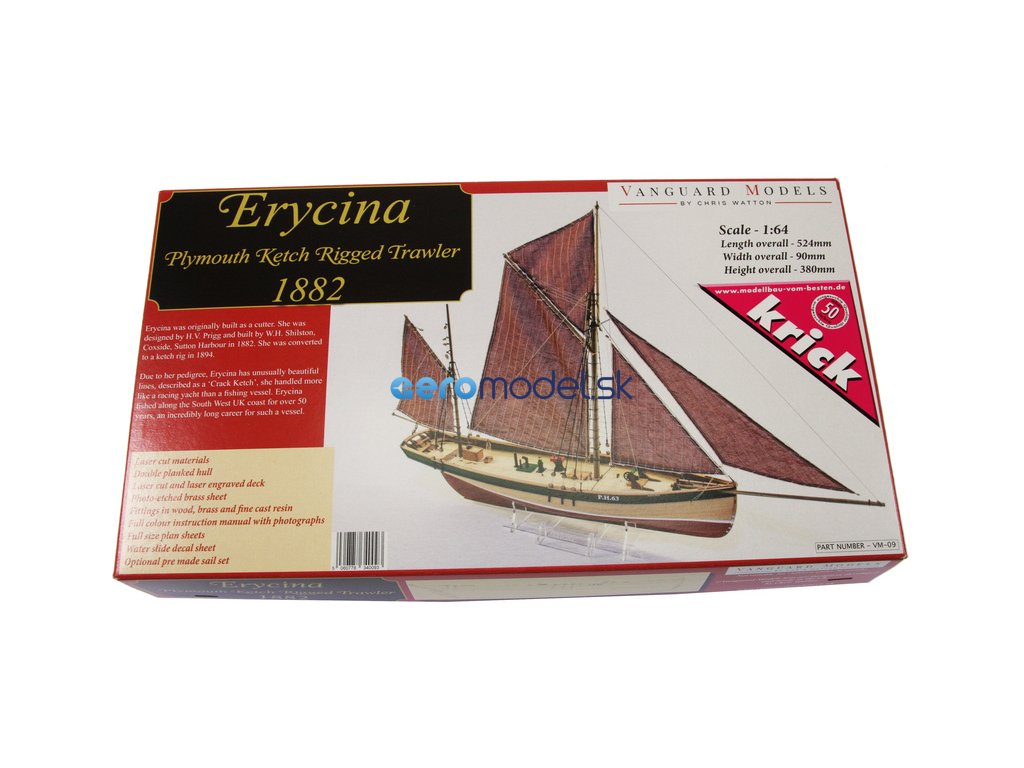 Stavebnice modelu lodi Vanguard Models Erycina 1882 v měřítku 1:64. Délka modelu lodi je 524mm, stavba převážně ze dřeva s drobnými doplňky, součástí je i stavební plán. Laserem řezané a 3D tištěné díly.