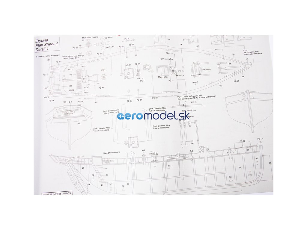 - Barevný průvodce stavbou s 10 plány, které obsahují nákresy stěžně a lanoví