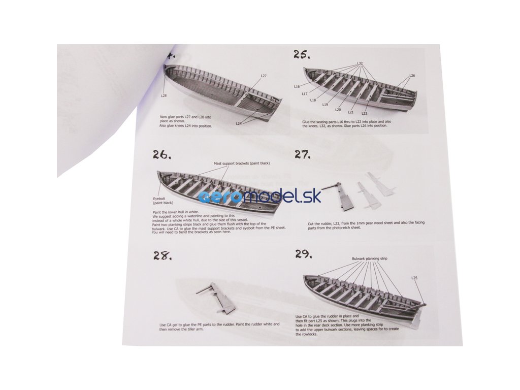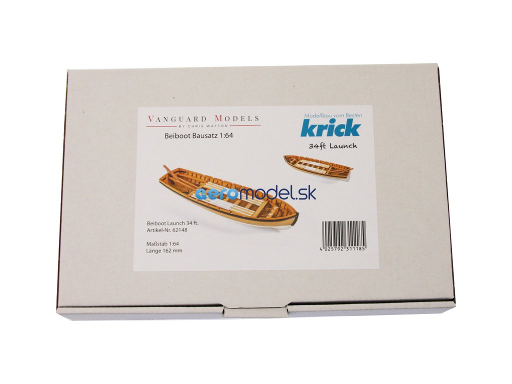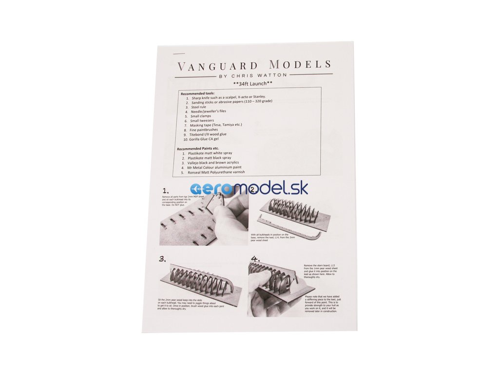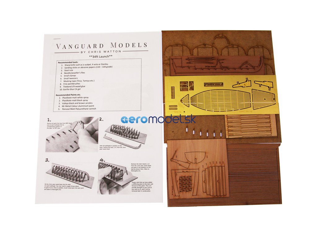Stavebnice modelu lodi Vanguard Models - Launch člun v měřítku 1:64. Délka modelu lodi je 162mm, stavba převážně ze dřeva s drobnými doplňky, součástí je i stavební plán. Obrazový manuál krok za krokem.