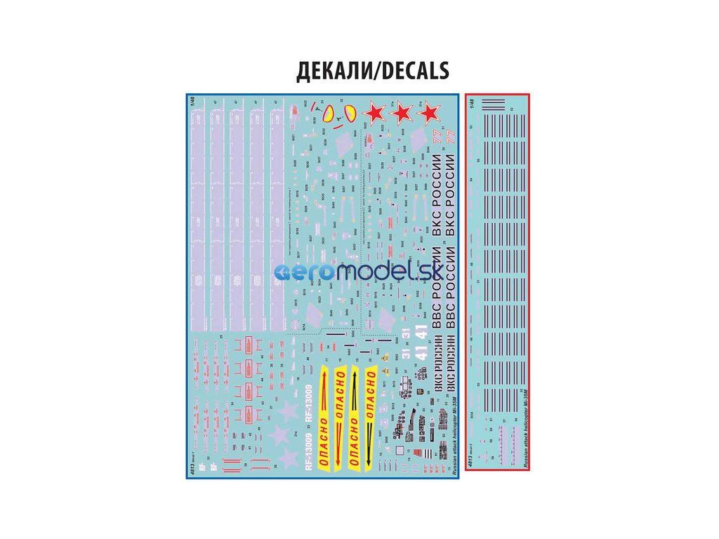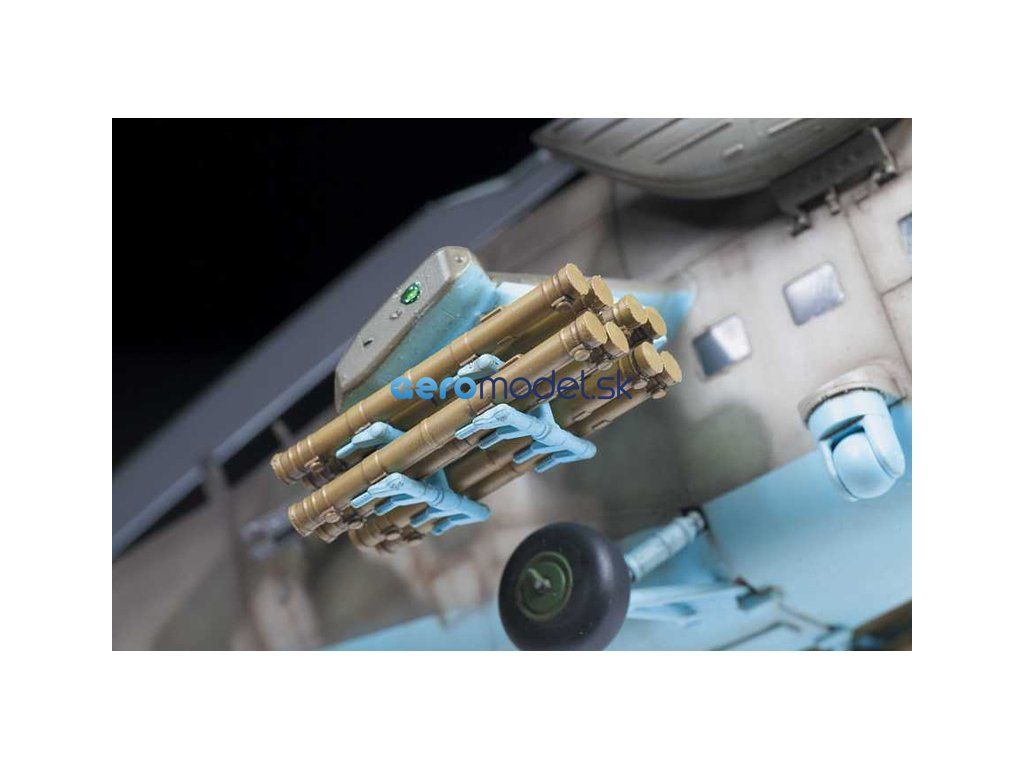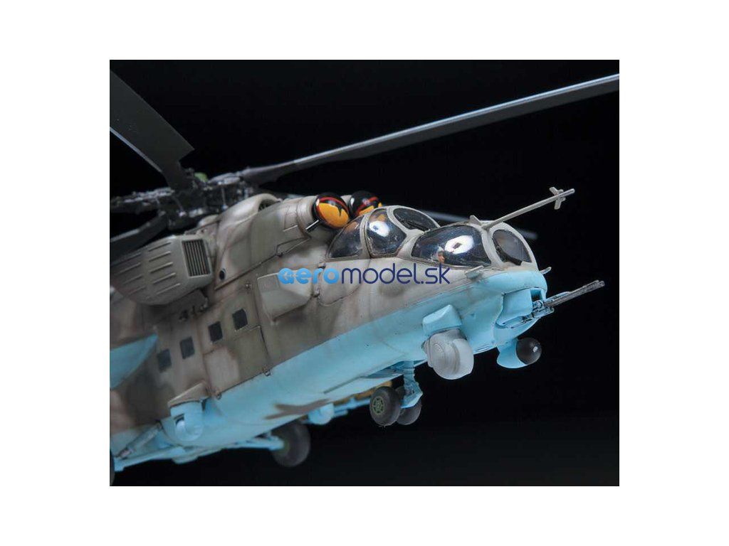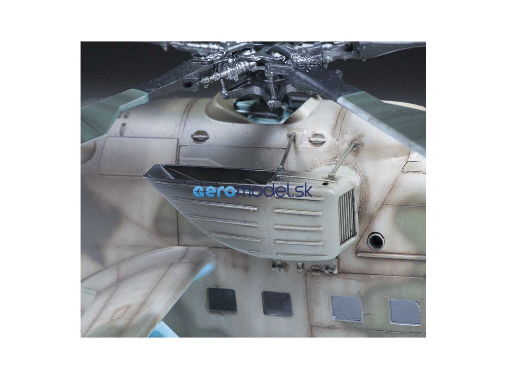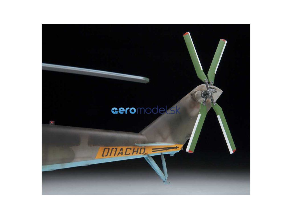 Plastikový model Zvezda 4813 - ruský viacúčelový útočný vrtuľník MIL Mi-35 M "Hind E" v mierke 1:48 na zlepenie. Stavebnica obsahuje 373 dielov, dĺžka 447 mm.