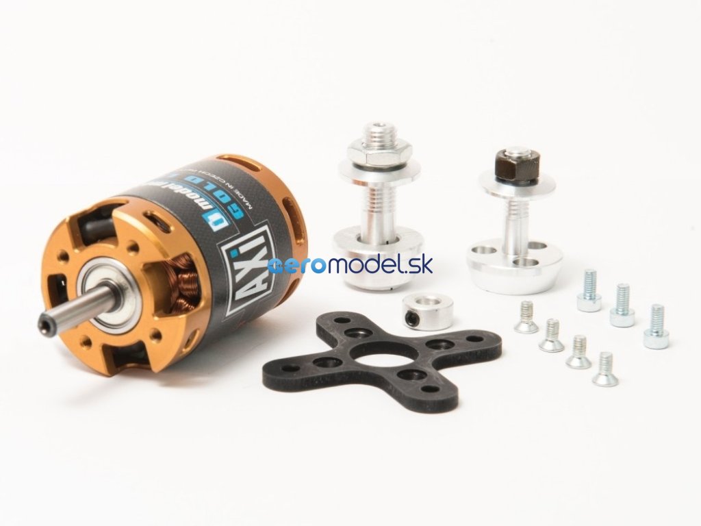 Sada motoru obsahuje: střídavý motor AXI 2826/8 V2 s kabely, kleštinový unašeč pro pevnou vrtuli, sadu pro zadní montáž, návod.