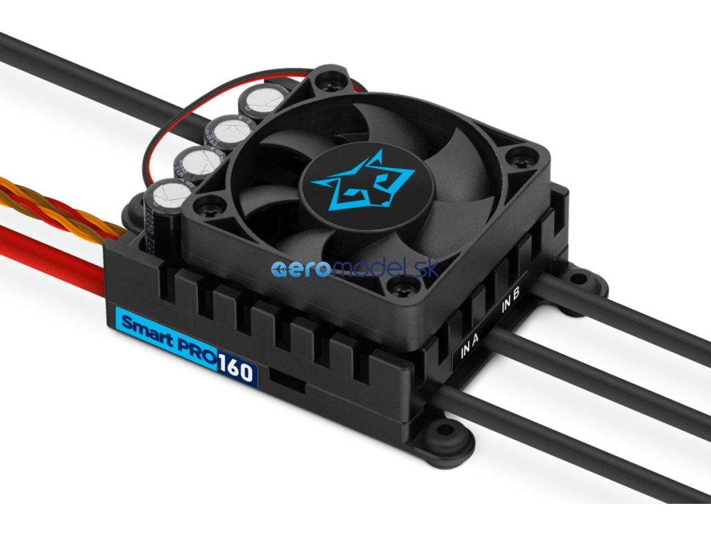 - Telemetrie (v závislosti na RC systému): napětí, proud, výkon, kapacita, teplota, otáčky, energie.