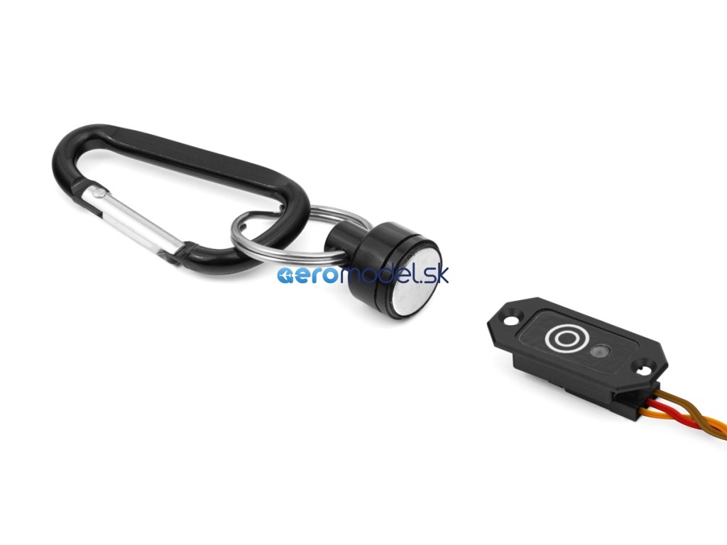 Balení obsahuje: Magnetický vypínač, vypínací magnet s kroužkem a karabinkou, 2 šrouby M2, návod.