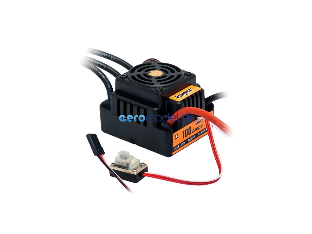 Regulátor s 100A trvalým zatížení je vodotěsný a má spínaný BEC, který poskytuje 6V s napájením 5A. To znamená, že bez problémů lze provozovat i Hi-Volt serva s vysokým točivým momentem a silným proudem.