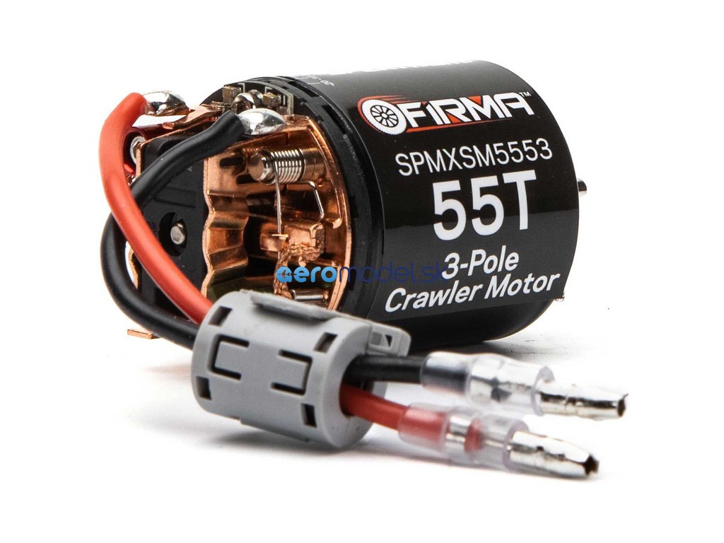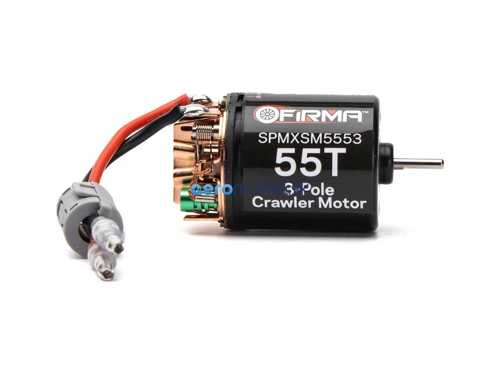 Stejnosměrný motor Spektrum Firma řady 540 s 55 závity, má standardní 3 zubový design pro maximální točivý moment a účinnost. Je určen pro RC modely aut typu crawler a expediční. Motor má precizní konstrukci se zapouzdřenými kuličkovými ložisky a vyměnitelnými kartáčky. Kartáčky jsou již z výroby tvarované. Pro náročné uživatele je možnost změnit nastavení časování motoru. Motor doporučujeme používat s 40A (a více) regulátorem.