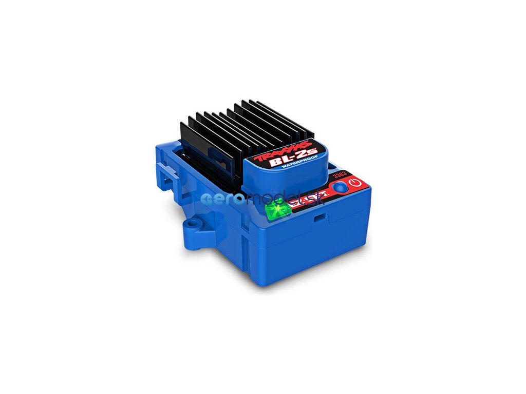 Voděodolný* elektronický střídavý regulátor BL-2S se třemi jízdními režimy, podporou 2S LiPo akumulátorů a snadným ovládáním tlačítkem EZ-Set™. Regulátor je vybaven tréninkovým režimem, který omezuje plný plyn na úroveň 50%. Díky tomu se mohou začínající řidiči nebo děti postupně seznámit s vlastnostmi modelu a připravit se na plnou sílu auta. Tepelná ochrana, ochrana proti podvybití LiPo akumulárů, pozlacené konektory, jednoduché ovládání, intuitivní signalizace dvoubarevnou LED diodou a výkonný chladič, který lze doplnit o volitelný ventilátor (není obsahem balení). Konektor pro motor je Traxxas Quick Connect pro snadné zapojení.