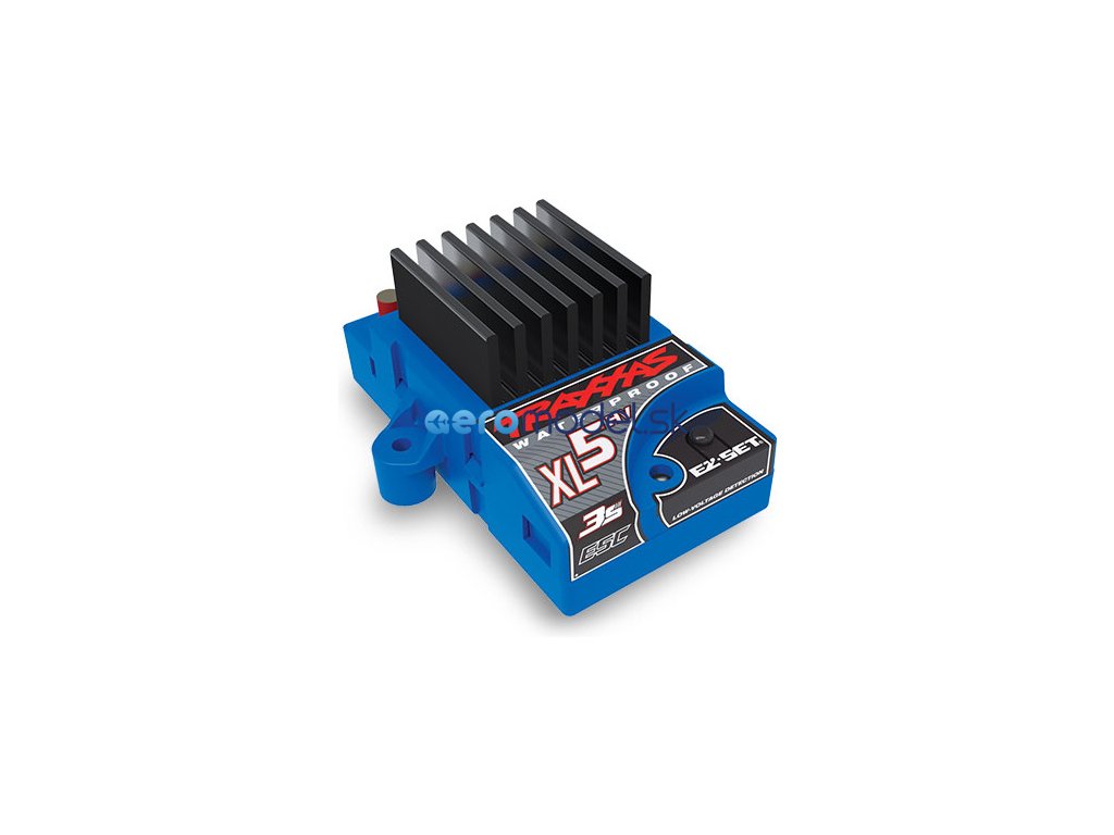 Stejnosměrný elektronický regulátor XL-5 HV. Regulátor je určen pro napájení 2-článkovým, nebo 3-článkovým LiPo akumulátorem. Regulátor lze rovněž napájet i 6-7-článkovými NiMH akumulátory. Jednoduchá volba jízdních režimů a dalšího nastavení, pomocí tlačítka EZ-SET. Indikace stavu regulátoru LED diodou. LVD ochrana proti podvybití LiPo akumulátoru. Tepelná ochrana. Konektor Traxxas. Vodě-odolná* konstrukce.