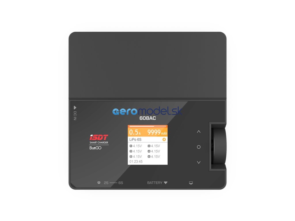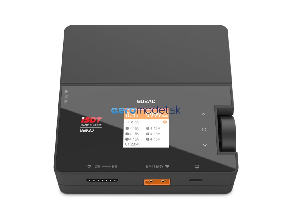 Malý nabíječ ISDT 608AC 200W je inteligentní nabíječ s napájením ze sítě nebo z autobaterie a velmi jednoduchou a přehlednou obsluhou. 608AC umožňuje nabíjet a vybíjet běžné typy článků (NiCd, NiMH, LiPo, LiHV, ULiHV, Li-ion, LiFe, Pb), navíc je vybaven vestavěným šestikanálovým balancerem, který zajišťují bezpečné nabíjení lithiových akumulátorů. Nabíječ je vybaven barevným LCD displejem a programovacím kolečkem/tlačítkem, které vám poskytne možnost komfortního a velice přehledného nastavování parametrů, řízení a sledování průběhu nabíjení/vybíjení.