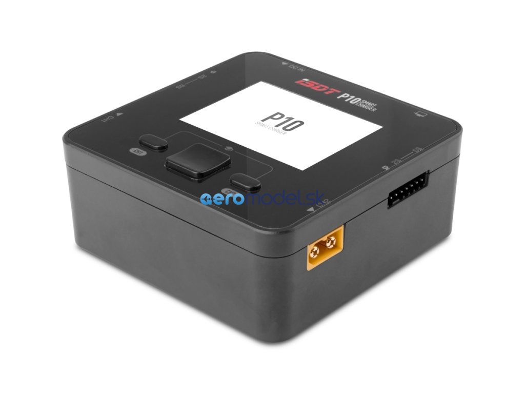 Miniaturní dvoukanálový nabíječ ISDT P10 2x250W je inteligentní nabíječ s napájením z autobaterie nebo stabilizovaného síťového zdroje a velmi jednoduchou a přehlednou obsluhou. P10 umožňuje nabíjet běžné typy článků (NiCd, NiMH, LiPo, LiHV, ULiHV, Li-ion, LiFe, Pb), navíc je vybaven vestavěnými šestikanálovými balancery, které zajišťují bezpečné nabíjení lithiových akumulátorů. Nabíječ je vybaven barevným LCD displejem a programovacími tlačítky, které vám poskytnou možnost komfortního a velice přehledného nastavování parametrů, řízení a sledování průběhu nabíjení.