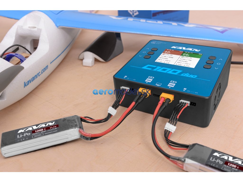 Malý dvoukanálový nabíječ KAVAN C100 Duo 2x500W byl konstruován se snahou nabídnout inteligentní nabíječ s vysokým výkonem s napájením ze sítě i autobaterie a velmi jednoduchou a přehlednou obsluhou. C100 Duo umožňuje nabíjet a vybíjet běžné typy článků (NiCd, NiMH, LiPo, LiHV, ULiHV, Li-ion, LiFe, Pb), navíc je vybaven vestavěnými šestikanálovými balancery, které zajišťují bezpečné nabíjení lithiových akumulátorů. Nabíječ je vybaven barevným LCD displejem a programovacími tlačítky, které vám poskytnou možnost komfortního a velice přehledného nastavování parametrů, řízení a sledování průběhu nabíjení/vybíjení. Mezi volitelnými jazyky menu samozřejmě nechybí ani čeština.