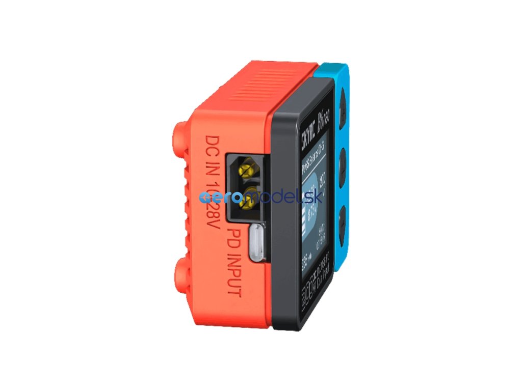 Nabíječ je vybaven výstupní zásuvkou XT60 a univerzální zásuvkou pro servisní konektory JST-XH umožňující přímo zapojit silové kabely akumulátoru a servisní konektory JST-XH sad 2-6S – pokud používáte sady s konektory XT60 a JST-XH, obejdete se zcela bez nabíjecích kabelů a adaptérů. Pro připojení servisních konektorů jiných systémů můžete použít standardní adaptéry Sky RC nebo RC System.
