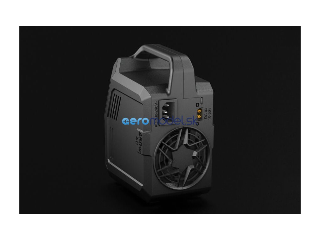 - Max. celkový výkon pro nabíjení 450 W při napájení ze sítě nebo celkem max. 1000 W při napájení ze stejnosměrného zdroje
