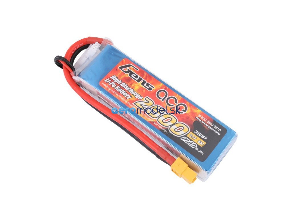 LiPo Gens Ace 2600 mAh 11,1 V batéria so zvýšeným vybíjacím prúdom 60C, navrhnutá pre lietadlá.