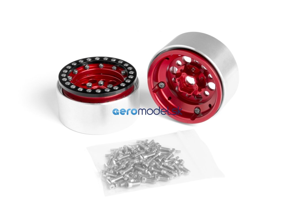 1.9'' Hliníkové beadlock disky pro 1/10 crawler/expedice červené - 2 ks