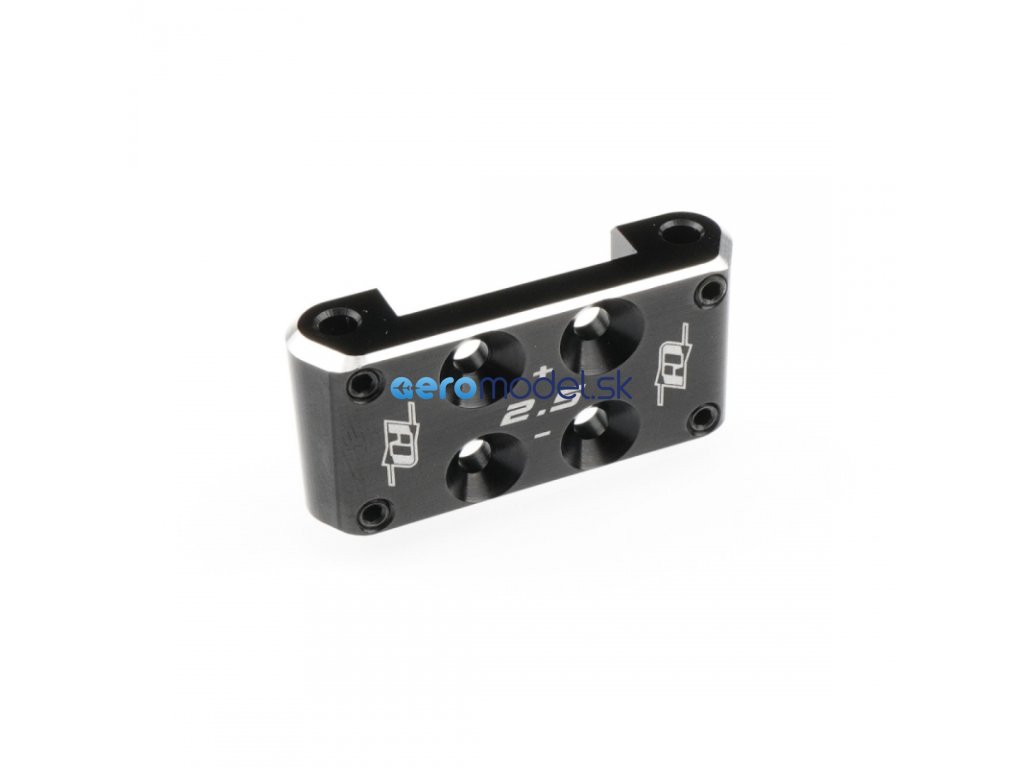 Hliníkový přední držák zavěšení Revolution Design Racing Products (RDRP) 0° (RDRP0649) a +/-2,5° (RDRP0650) jsou prémiové tuningové díly určené k nahrazení standardního držáku buggy Team Associated RC10B7 a RC10B7D. Tyto držáky jsou vyrobeny z vysoce pevného leteckého hliníku 7075-T6, který nabízí velkou stabilitu a odolnost. Černě eloxovaný povrch a stříbrné detaily hran dodávají buggy vizuálně atraktivní vzhled.