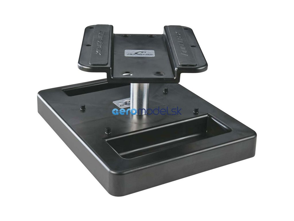 Duratrax Stojánek na auto Pit Tech Deluxe černý pro servis aut 1:8. Pryžové podložky na deskách stojánku drží šasí na podložce, robustní stojan lze snadno demontovat a úsporně uložit. Vrchní deska je otočná, užitečná pomůcka při servisu modelu auta. Plastová základna a podložka. Duralová stojka.