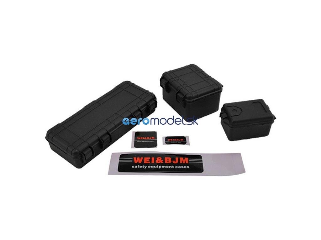 H-Speed Vám nabízí detailně zpracované makety krabiček různých velikostí (sada 3ks) pro RC modely aut. Barva je černá. Měřítko 1:10. Rozměr 102 x 49 x 22 / 50 x 49 x 32 / 49 x 30 x 26 mm