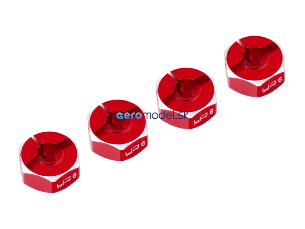 Hliníkové HEX unašeče kola 12x6mm, 4ks, červený