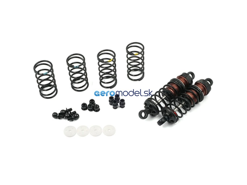 Big Bore Go! sada velkoobjemových tlumičů - přidejte olej a můžete vyrazit! Obsahuje dva různé typy kulových čepů pro různé typy vozů. Součástí jsou různé pružiny, abyste si mohli vyladit tvrdost odpružení a nemuseli po zakoupení této sady tlumičů hledat jiné pružiny. Pokud to s laděním myslíte opravdu vážně, jsou součástí balení také pístky s různým vrtáním, abyste mohli nastavit, jak tlumič reaguje na tlumicí olej.