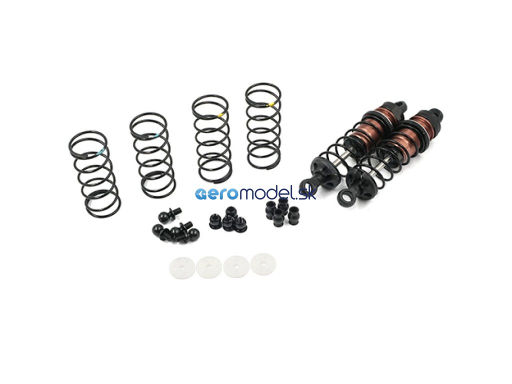 Big Bore Go! sada velkoobjemových tlumičů - přidejte olej a můžete vyrazit! Obsahuje dva různé typy kulových čepů pro různé typy vozů. Součástí jsou různé pružiny, abyste si mohli vyladit tvrdost odpružení a nemuseli po zakoupení této sady tlumičů hledat jiné pružiny. Pokud to s laděním myslíte opravdu vážně, jsou součástí balení také pístky s různým vrtáním, abyste mohli nastavit, jak tlumič reaguje na tlumicí olej.