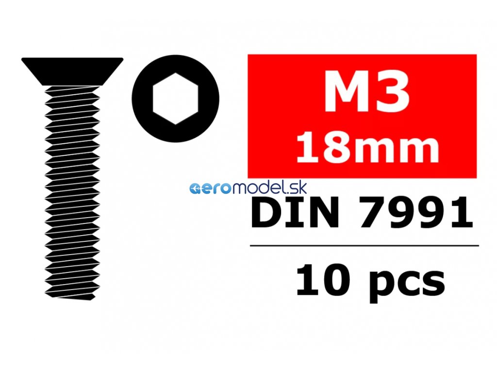 Ocelový Imbusový šroub s zápustnou hlavou, M3x18mm, 10 ks.
