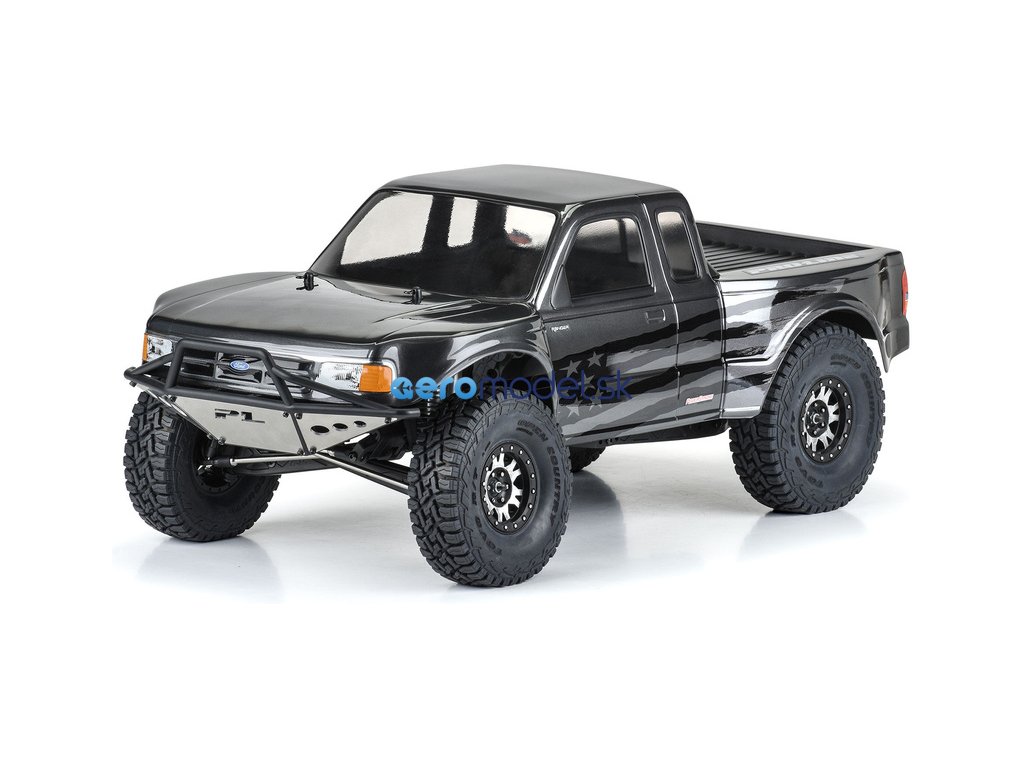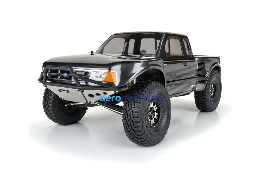Pro-Line karosérie čirá 1993 Ford Ranger Pre-Runner, pro expediční RC modely auta crawlery v měřítku 1:10, rozvor 313 mm, délka 521 mm, šířka 229 mm. Vyrobeno z odolného lexanu. Tato karoserie má vystouplé agresivní blatníky, které vytvářejí drsný off-roadový vzhled. Větší blatníky vám dávají možnost provozovat model a větší koly.