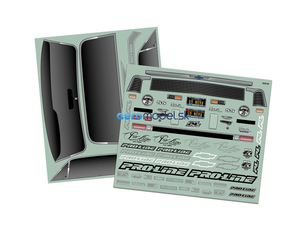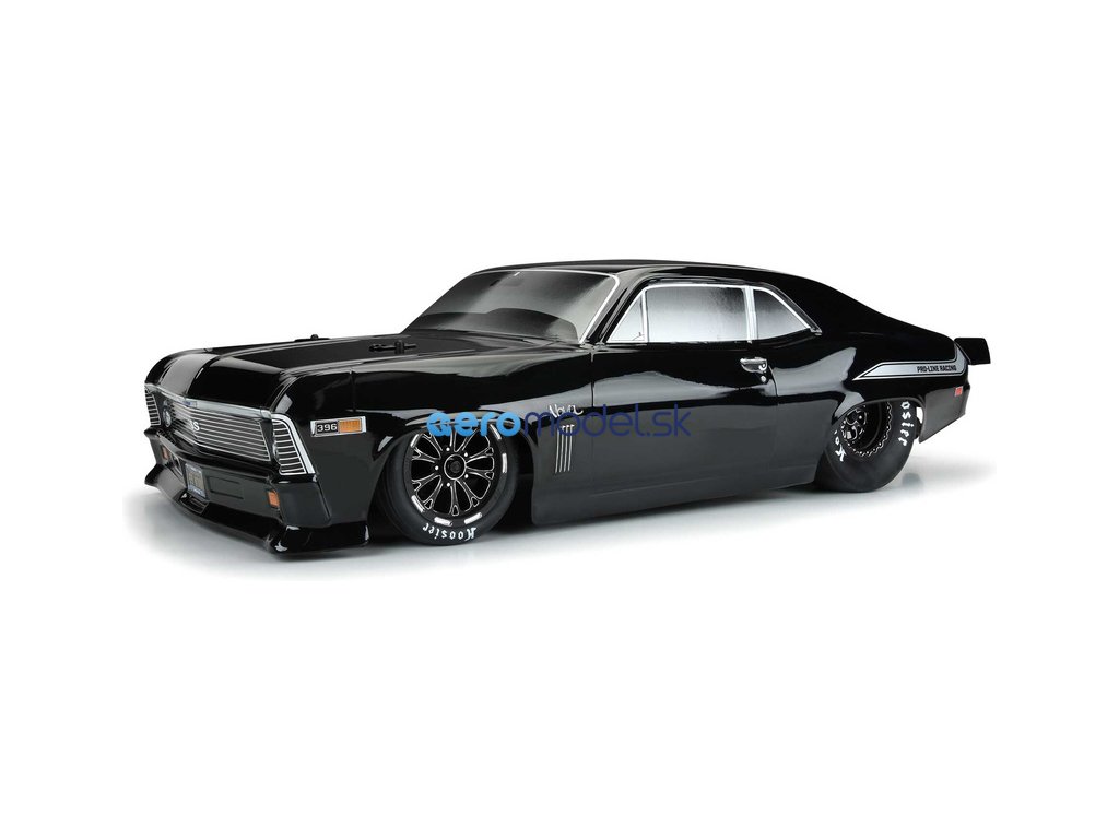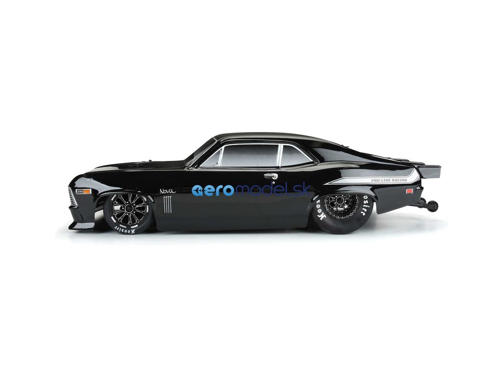 Pro-Line karosérie černá 1969 Chevrolet Nova Drag Car, pro RC modely aut v měřítku 1:10, rozvor 335mm, délka 561mm, výška 147mm. Vyrobeno z odolného lexanu.