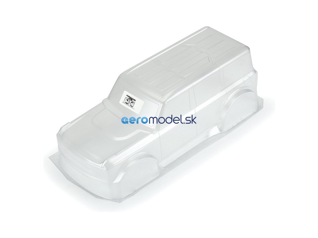 Pro-Line karosérie čirá 2021 Ford Bronco, pro RC modely aut Stampede, Granite, Vorteks v měřítku 1:10, rozvor 267mm, délka 396mm, šířka 174mm. Vyrobeno z odolného lexanu.