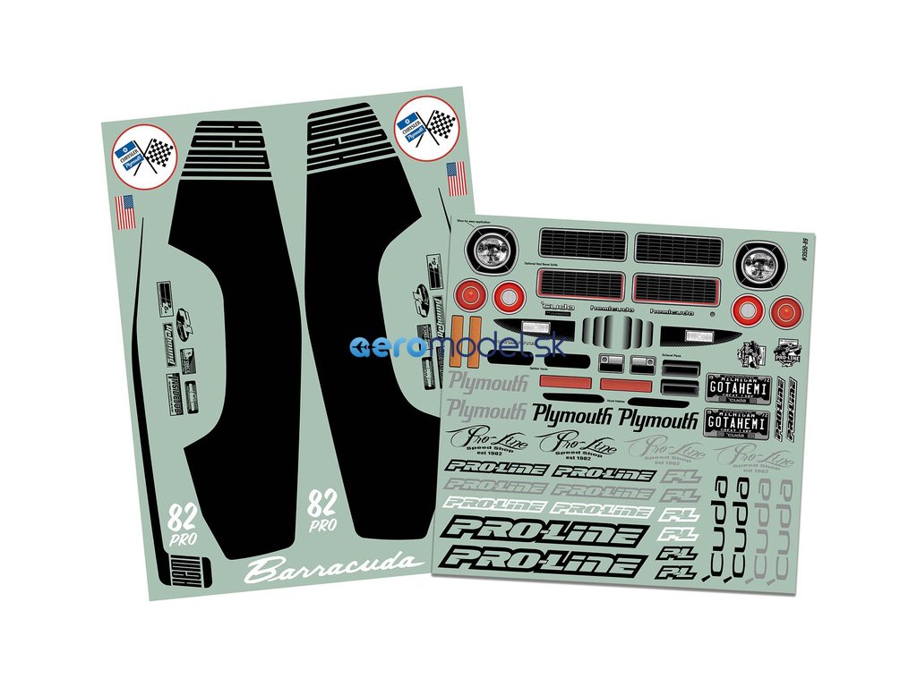 Dravý vzhled karosérie 1972 Plymouth Barracuda pro horké pneumatiky. Přeměňte svůj model auta Losi® 22S™ No Prep Drag Car, Slash® 2wd nebo AE DR10, apod., na zajímavý stroj s karosérií pro Dragstery. V balení je arch s řadou obtisků pro nazdobení karosérie. Doporučujeme použít přední pneumatiky Hoosier 2,2" Drag Racing (PRO10158203) vpředu a pneumatiky Hoosier Drag Slick SC 2,2"/3,0" Drag Racing (PRO10157203) vzadu, kola Pomona Drag Spec a Stinger Wheelie Bar, pro maximální výkony