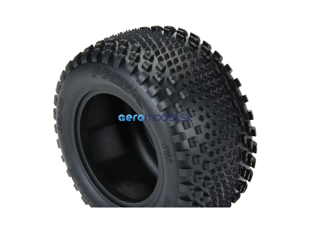 Pneumatiky Pro-line 2.2" Prism T CR3 Carpet přední (2 ks), pro RC modely aut 1:10 Stadium Truck pro závody na koberci. Rozměry ⌀103x53mm. Směs střední CR3 (Medium Carpet).